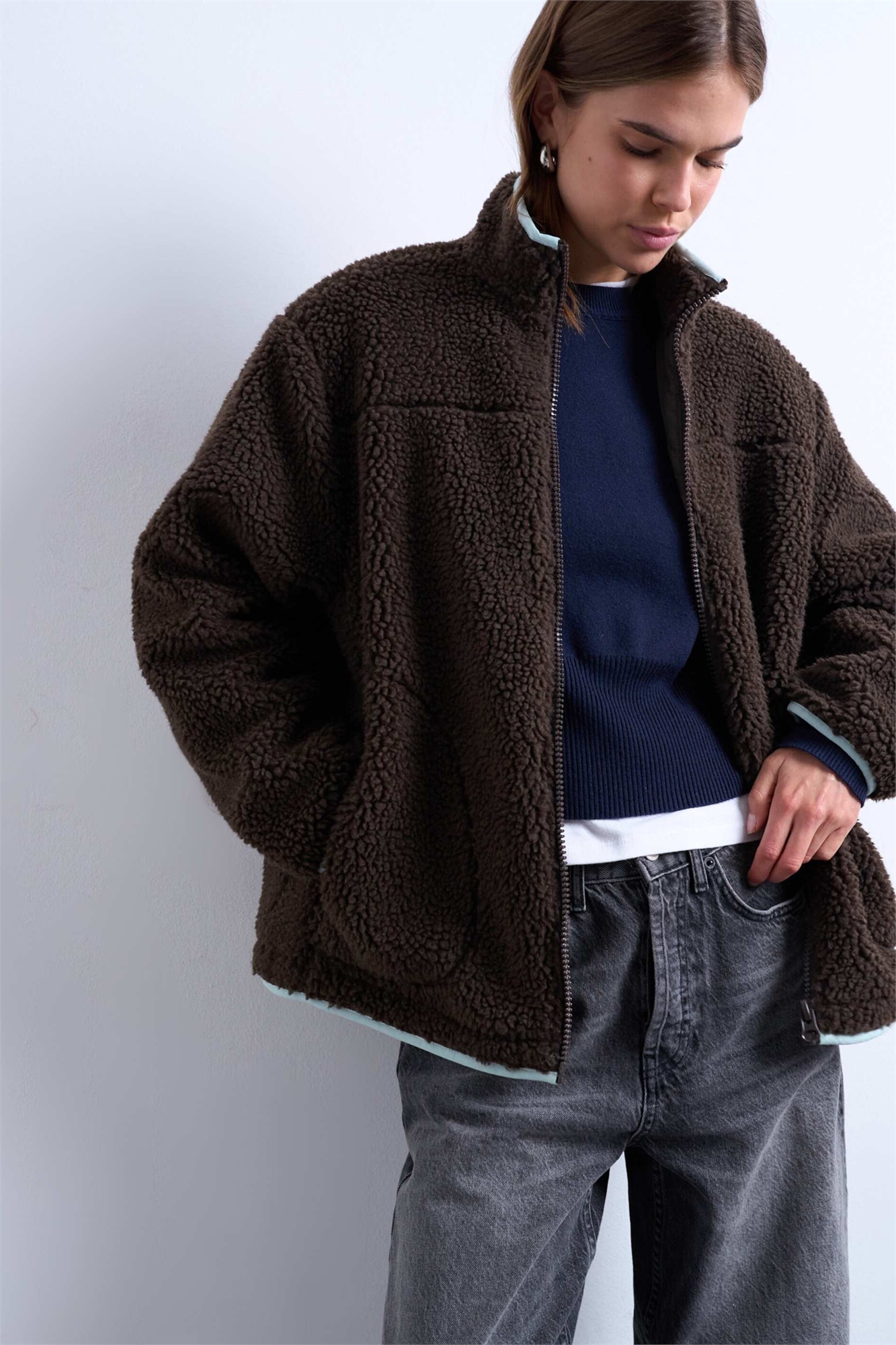 Борг: ткань типа плюшевого мишки с мягкой, неровной текстурой Основной материал: 100% полиэстер, подкладка: 100% полиэстер.