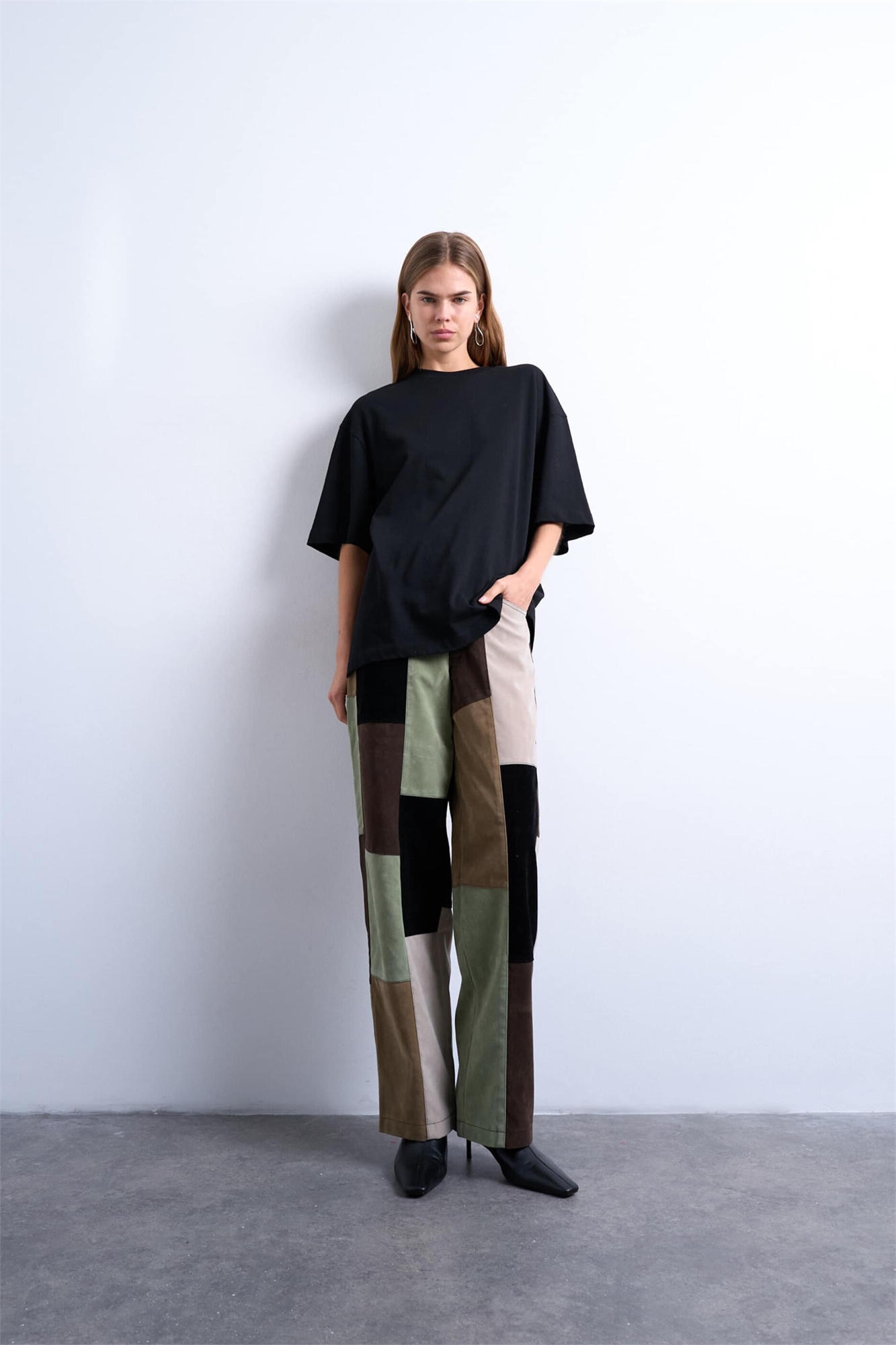 Брюки-клин с завязками из искусственной замши в стиле «пэтчворк»
