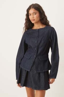Джинсовая куртка с баской и пуговицами