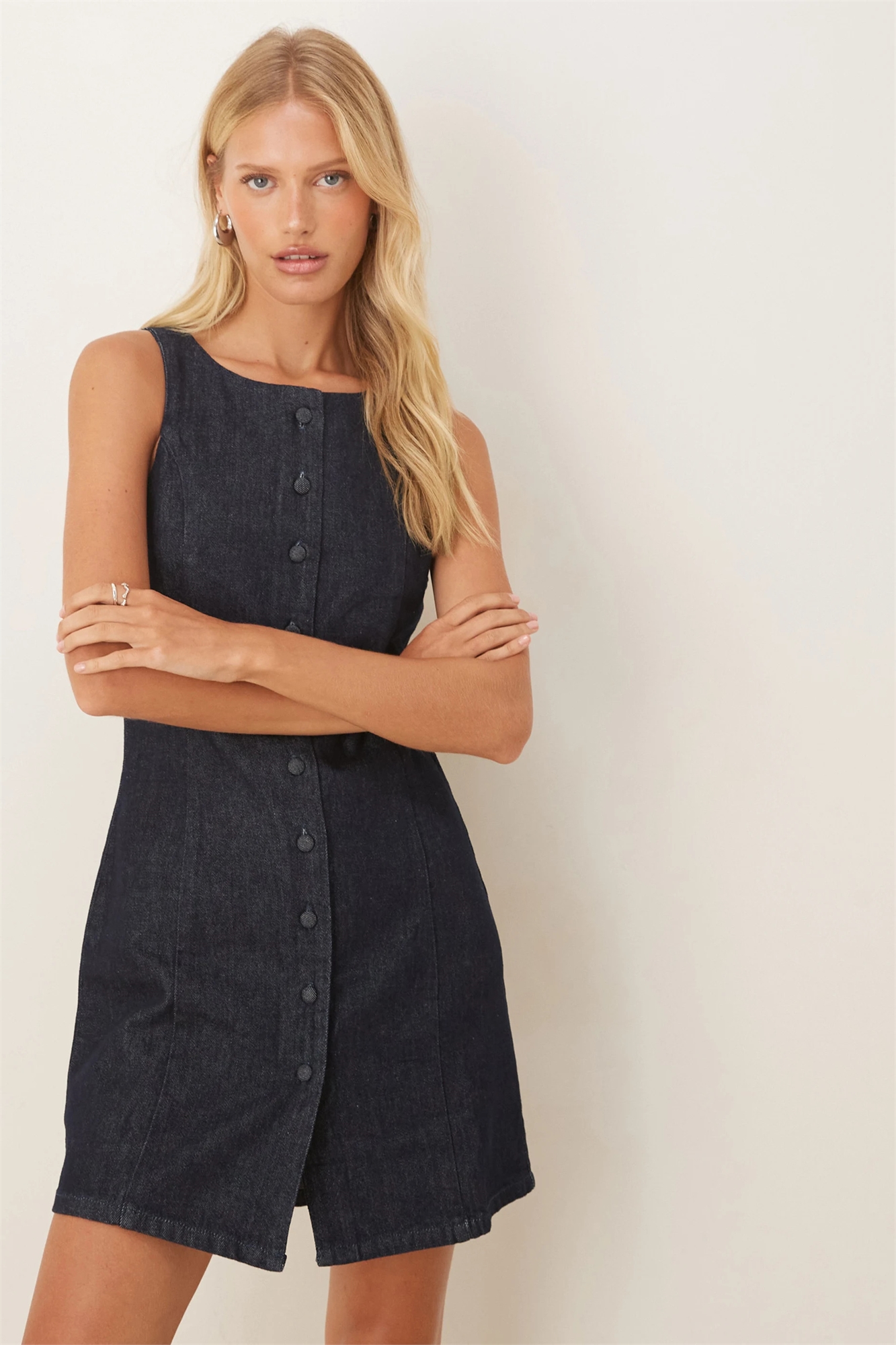 Платье-жилет из денима на пуговицах