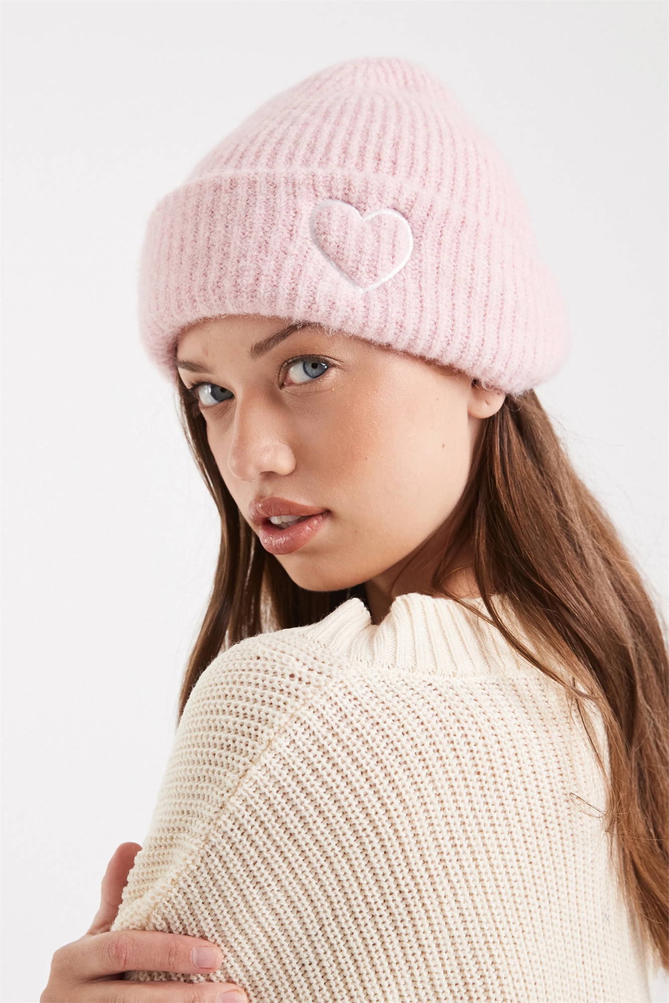 Вязаная шапка-бейсболка с вышитым сердечком