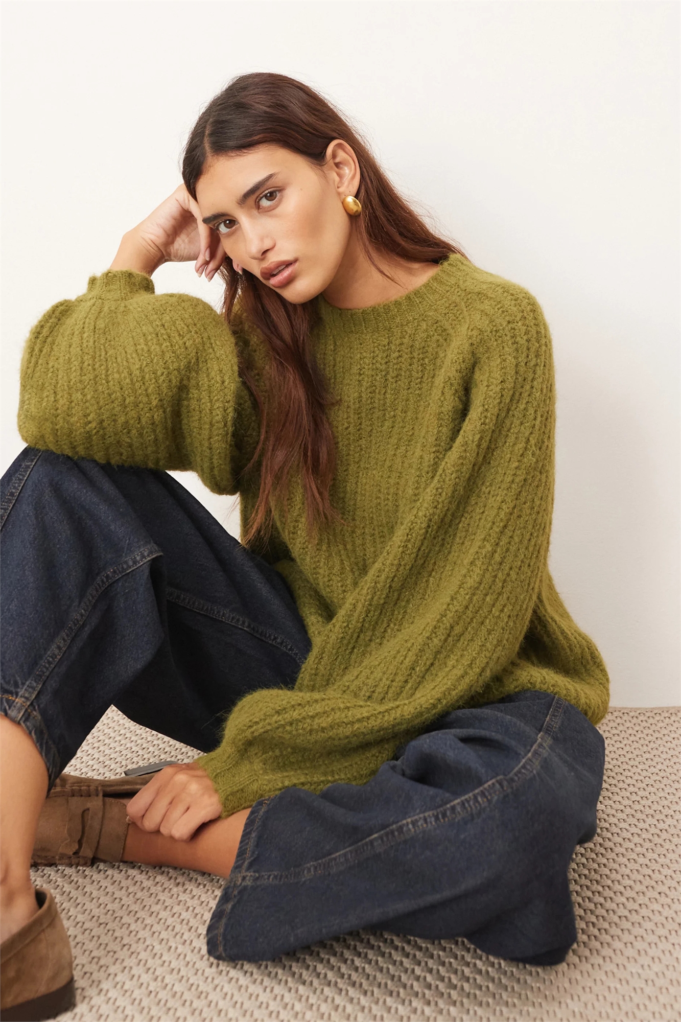 Свитер оверсайз из ребристой вязки с добавлением шерсти