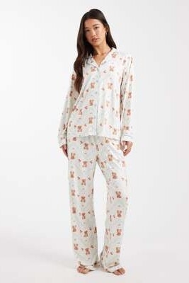 Пижама на пуговицах из сверхмягкой ткани с принтом в виде медвежонка