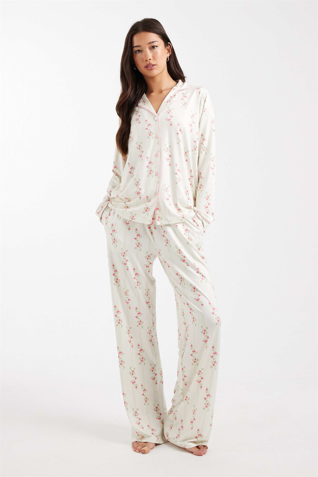 Пижамный комплект с пуговицами из сверхмягкой ткани с цветочным принтом