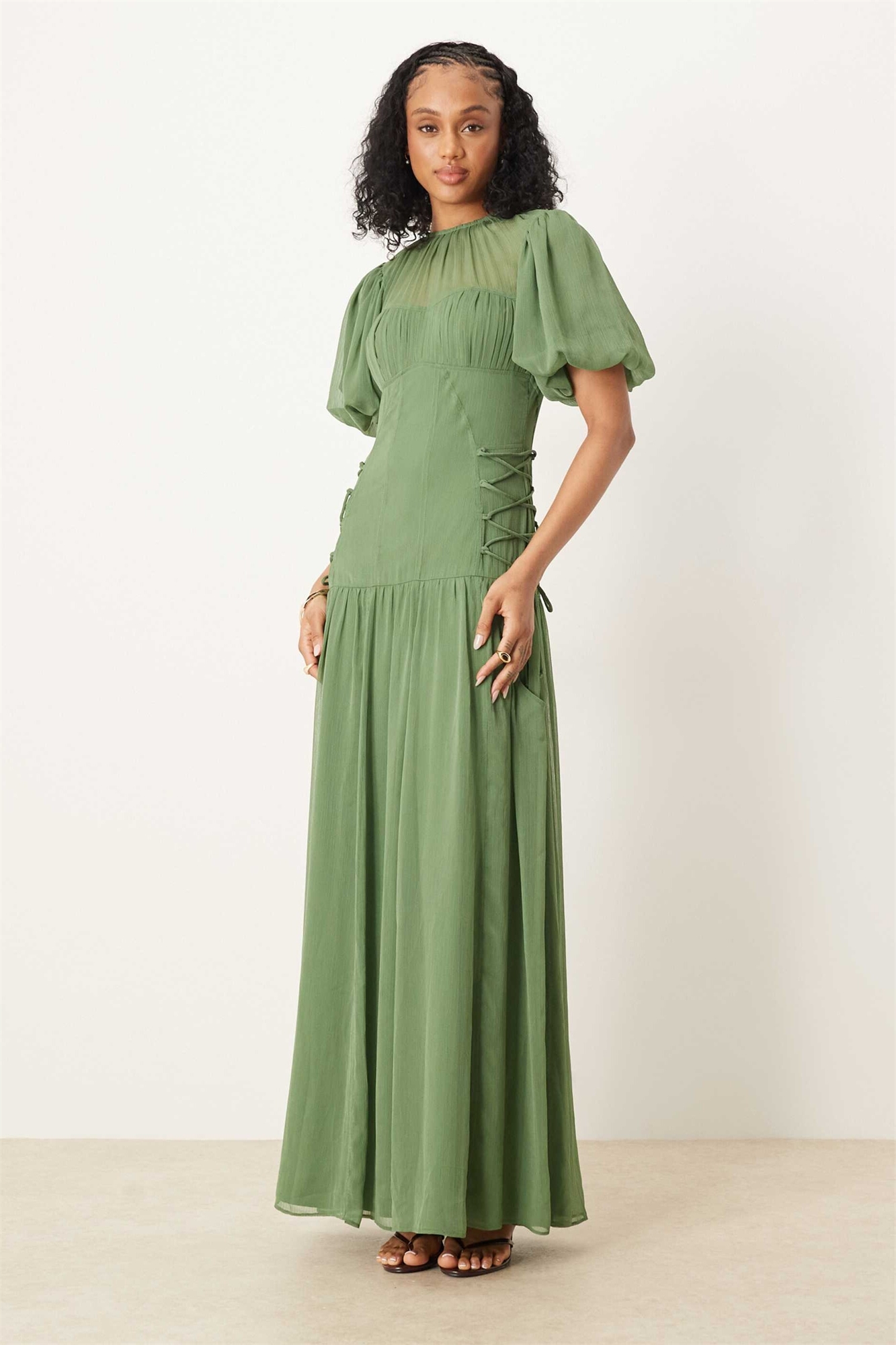 ASOS DESIGN: Платье средней длины из шифона с буфчатыми рукавами для высоких девушек