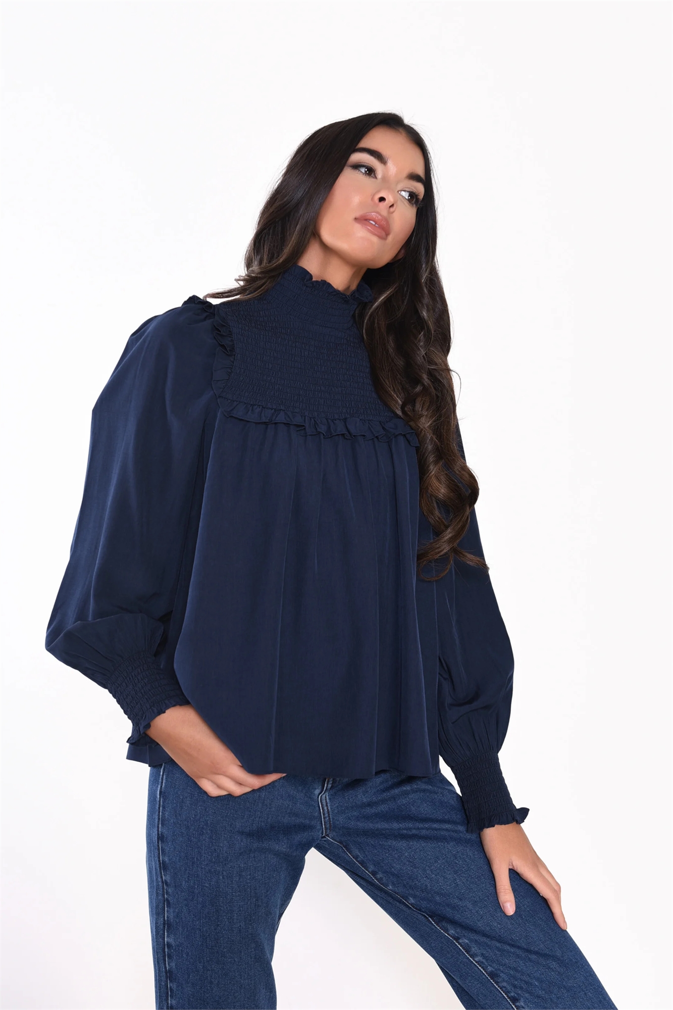 Блузка с высоким воротником и вышивкой