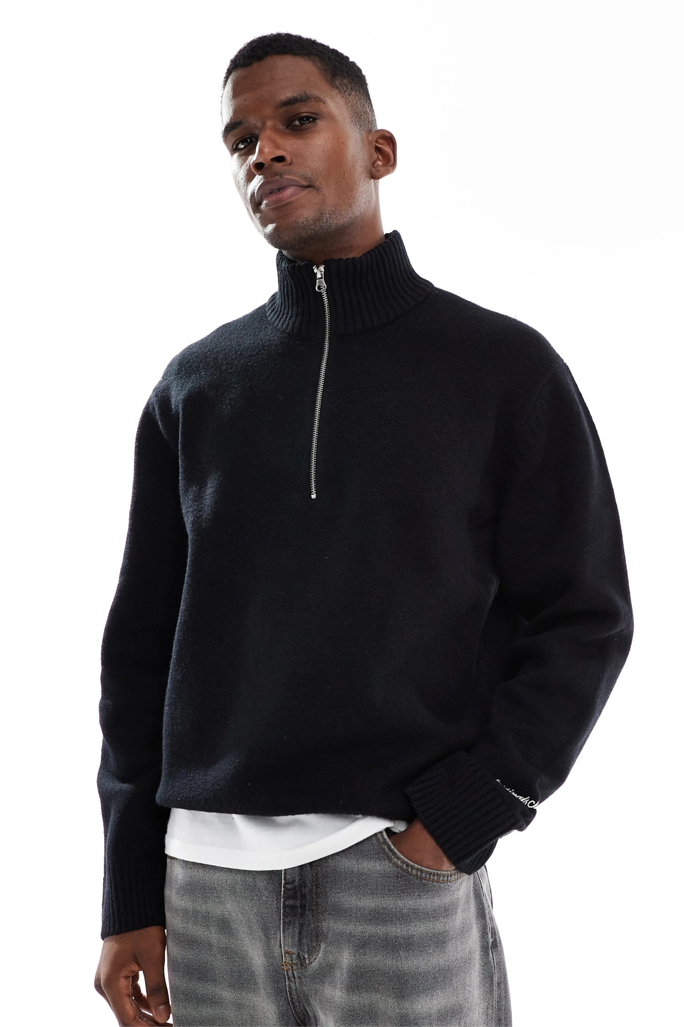 Свитер свободного кроя с толстой тканью и застежкой-молнией на 1/4 длины