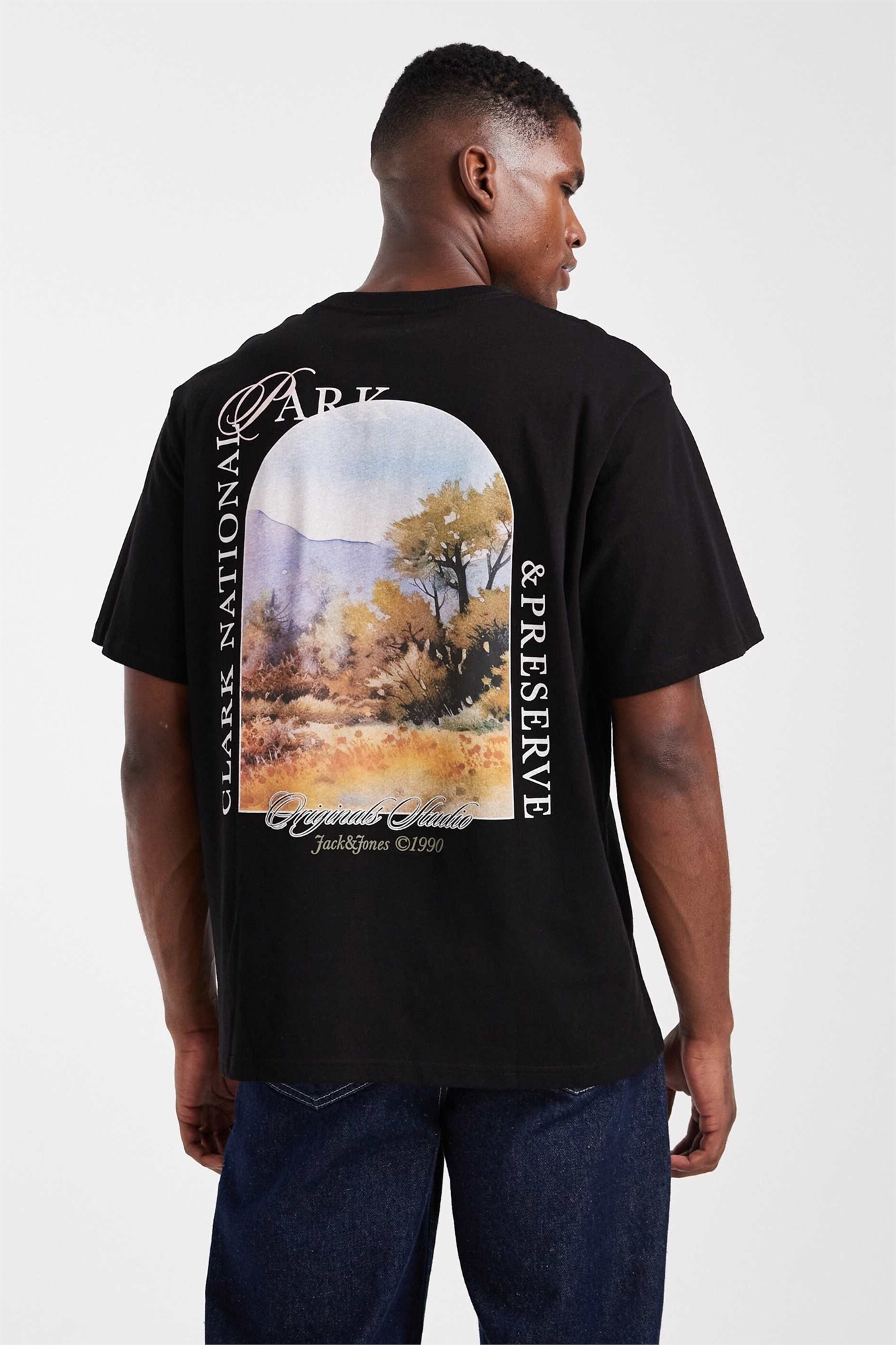 Футболка свободного кроя с пейзажным принтом на спине
