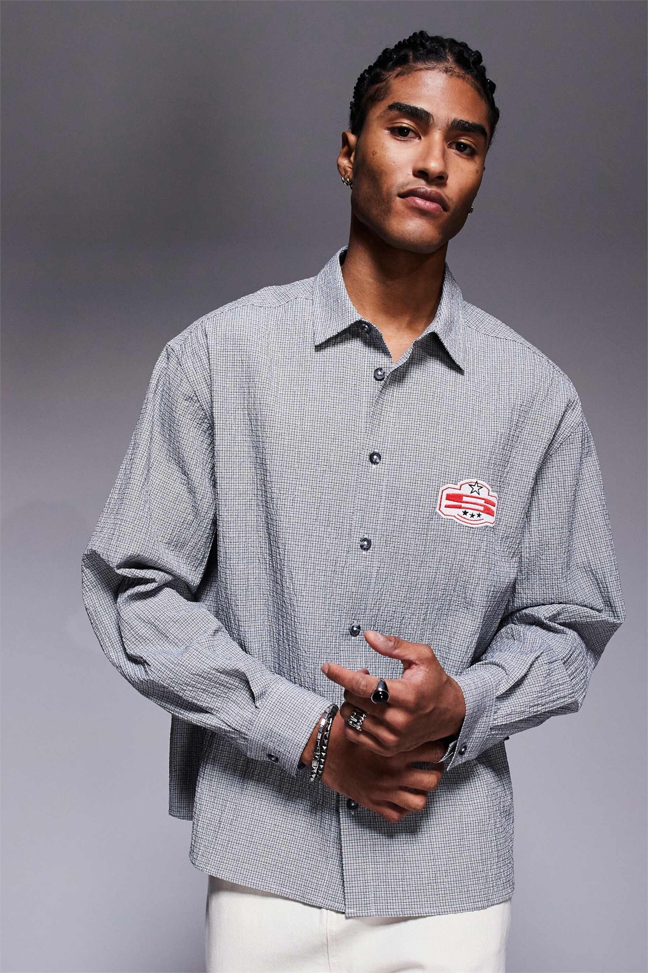 Сирсакер: легкая ткань с рельефной, гофрированной текстурой. Основной состав: 58% хлопок, 41% полиэстер, 1% эластан.