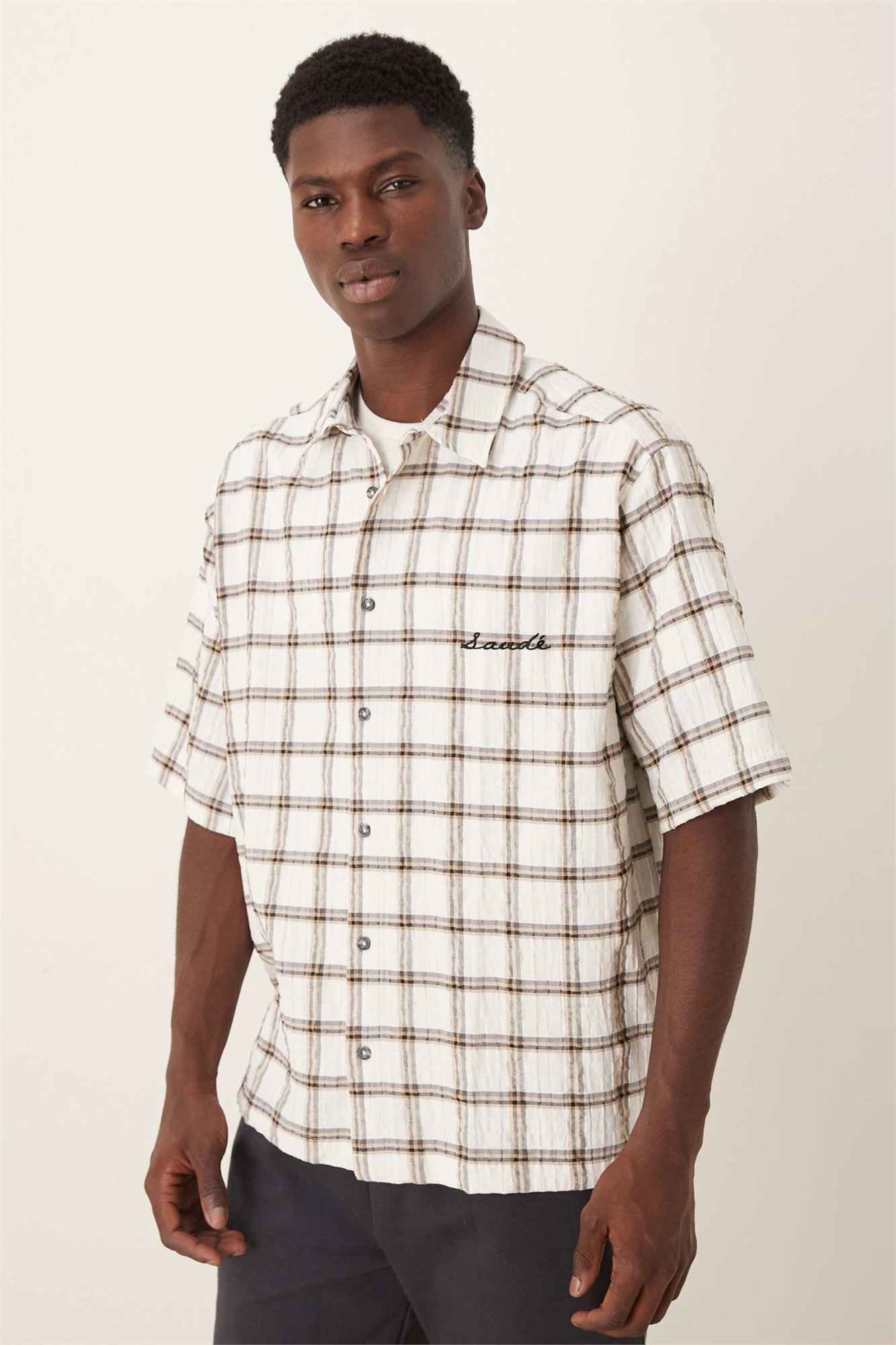 Рубашка в клетку свободного кроя с вышивкой на груди