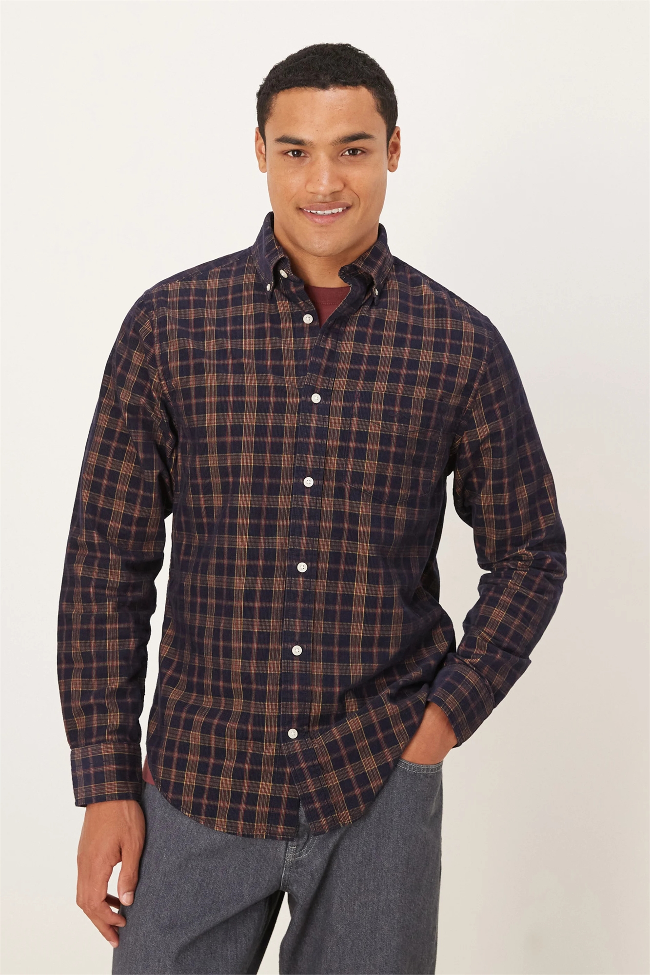 Рубашка из вельвета в клетку с прямым кроем
