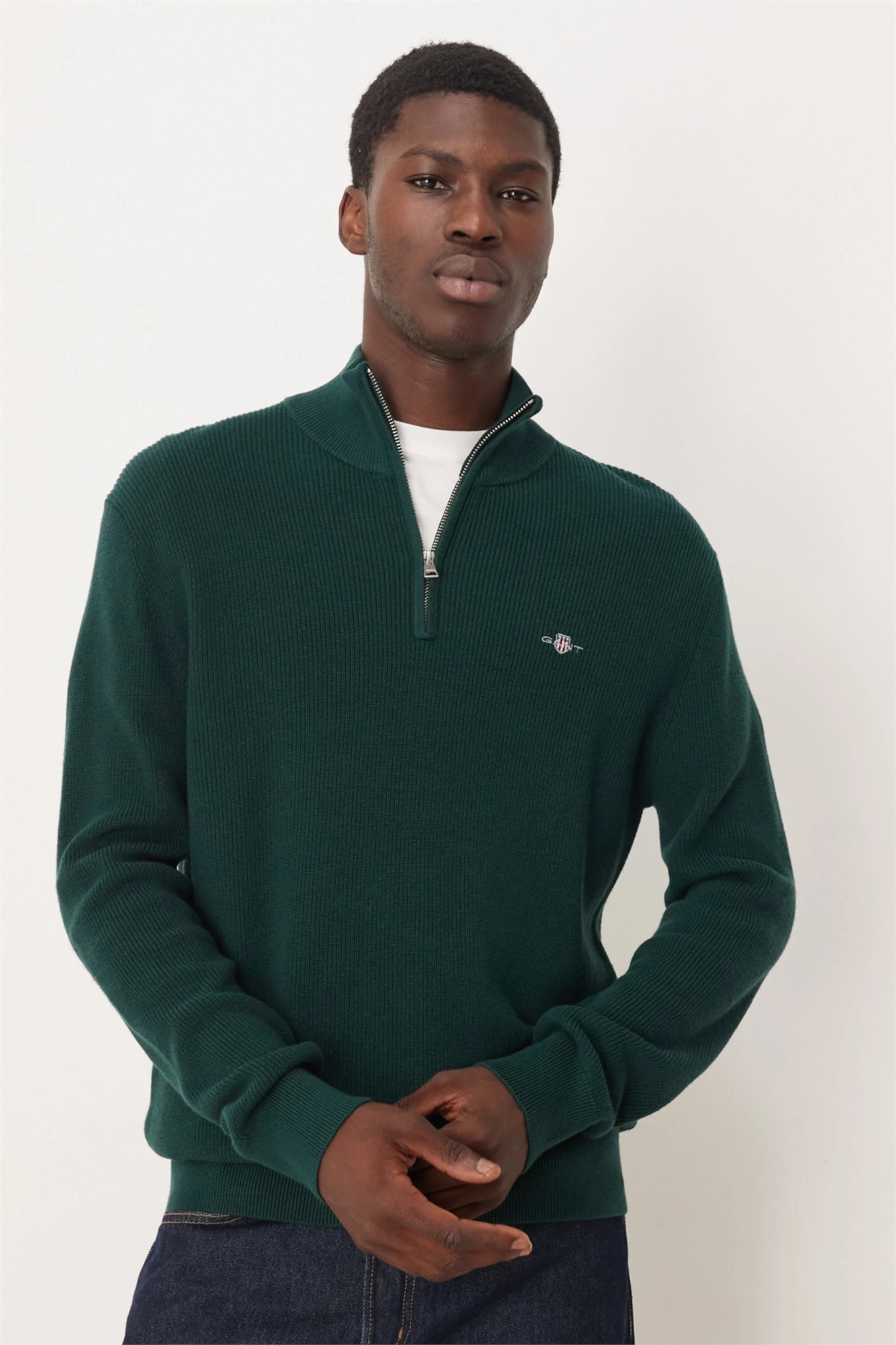 Свитер из трикотажа с ребристой отделкой и полузастежкой-молнией