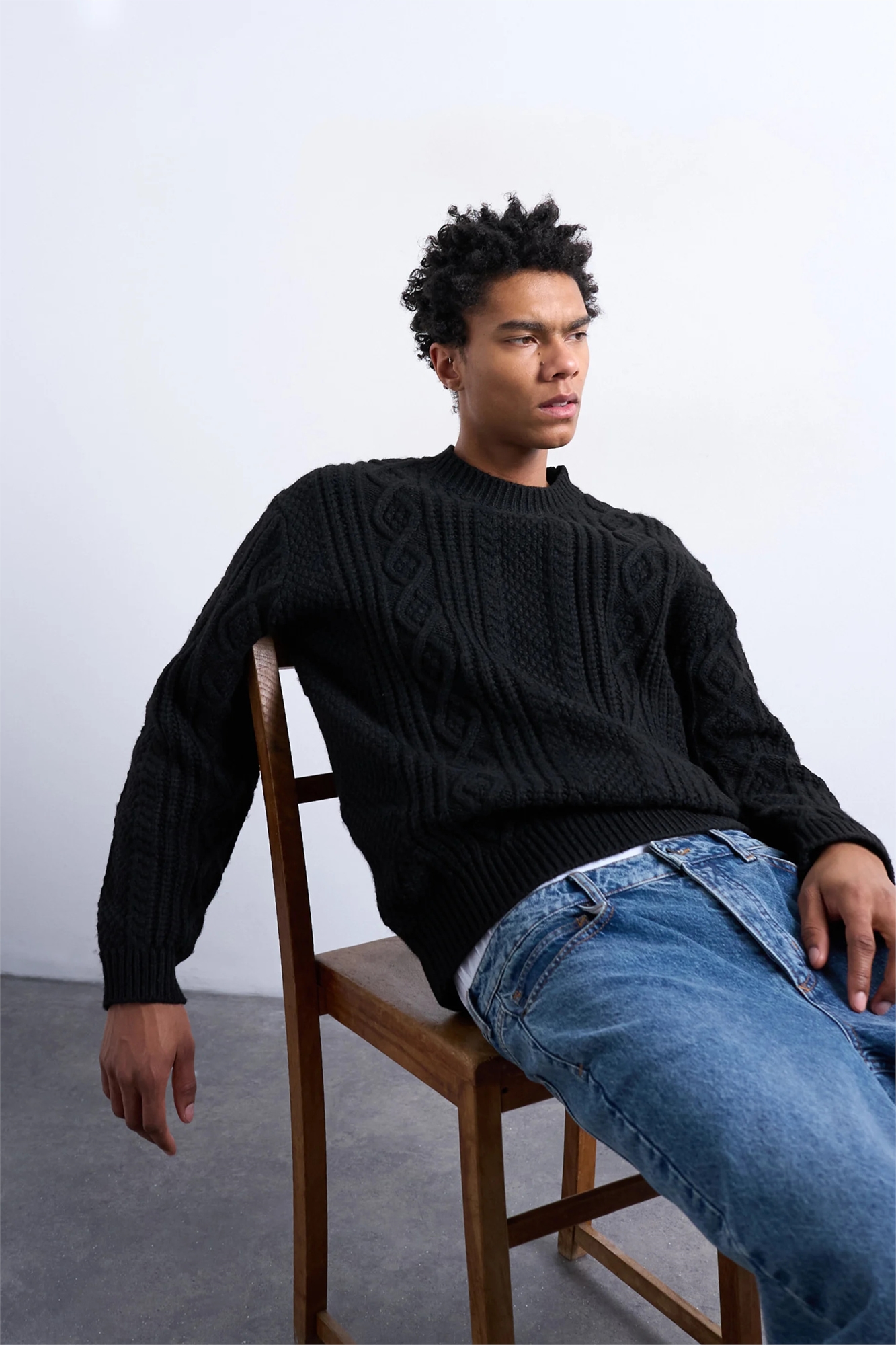 Свитер с крупной косой вязкой