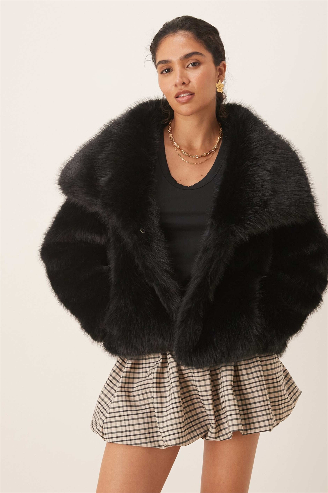 Пальто из искусственного меха с объемным воротником