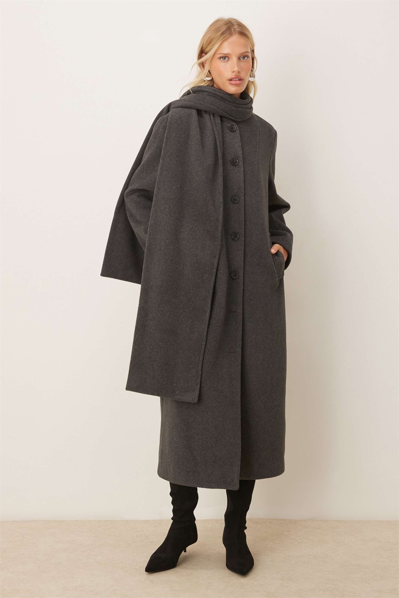 Пальто с воротником-шарфом