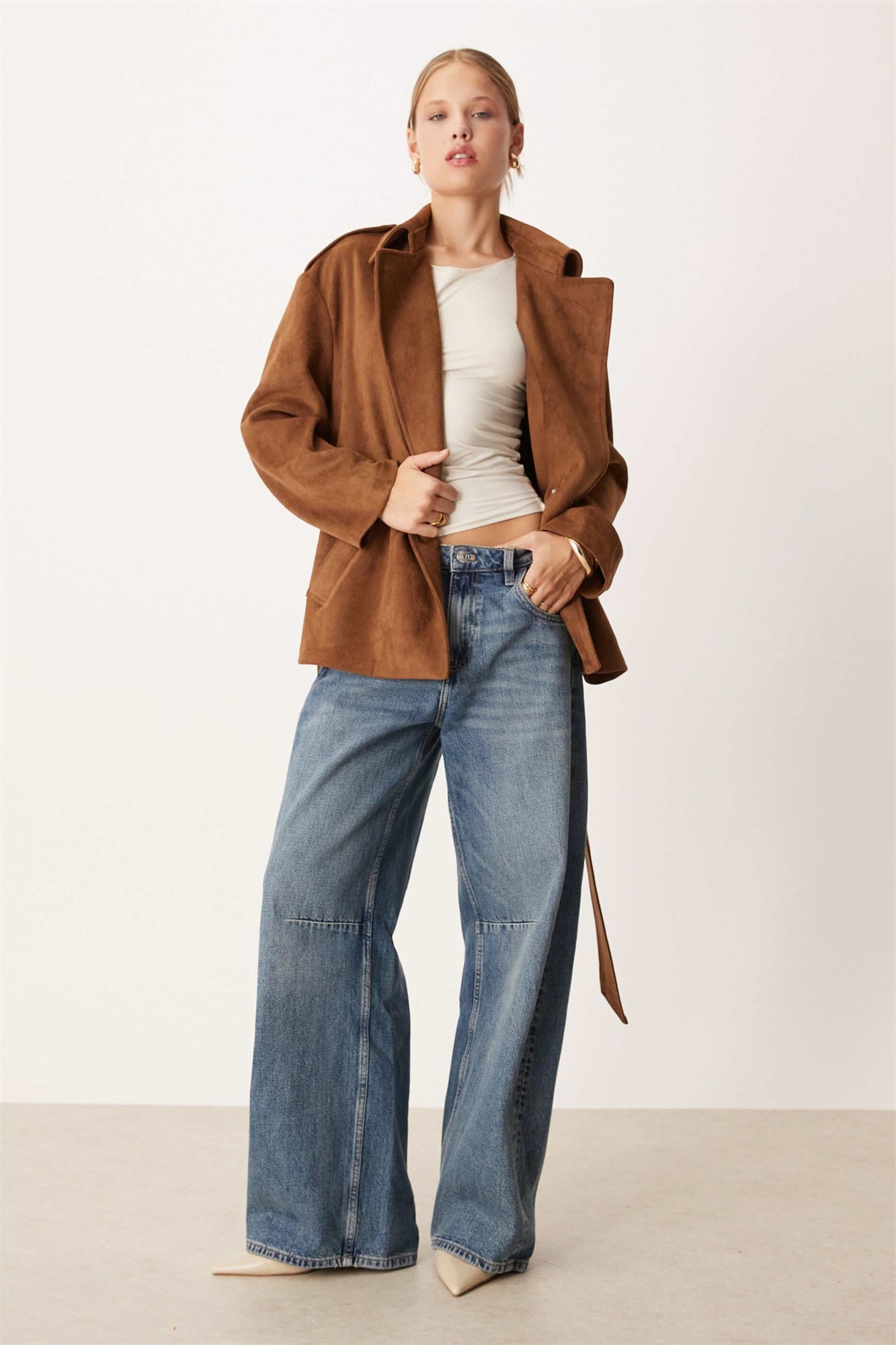 Жакет из искусственной замши с завязками на талии