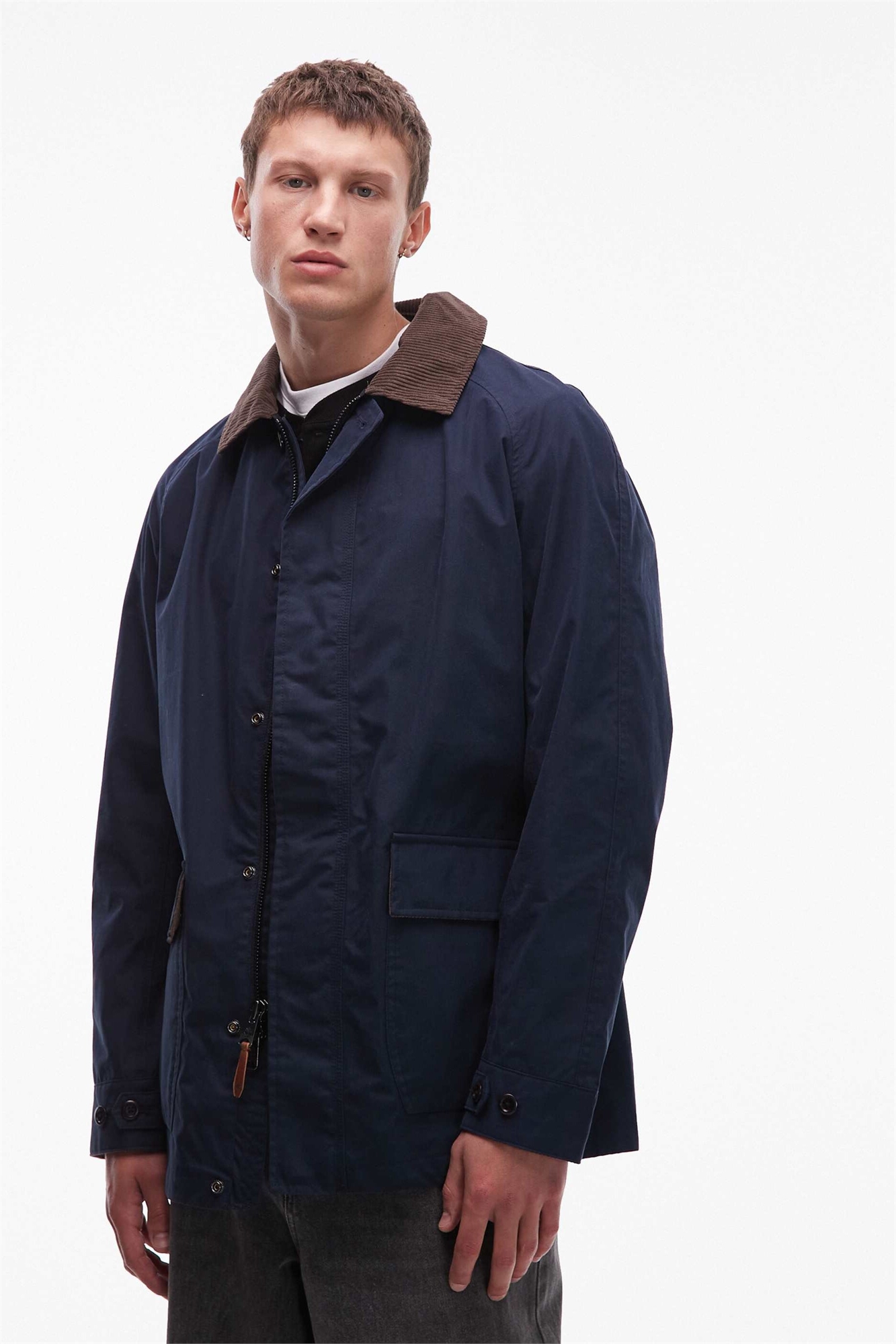 Промытое пальто в стиле «барн» с воротником из вельвета