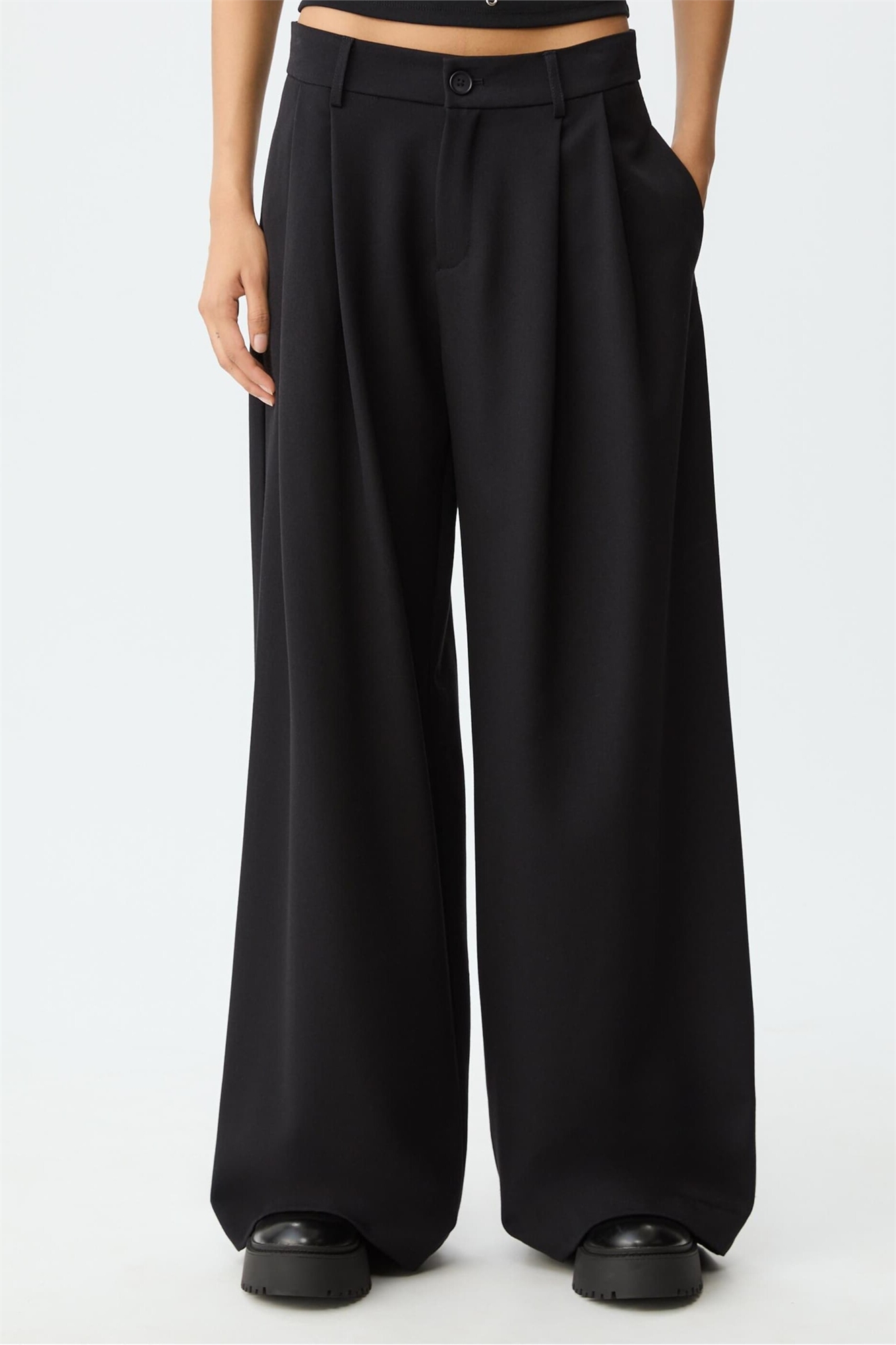 Классические брюки с широкими брючинами и вытачками