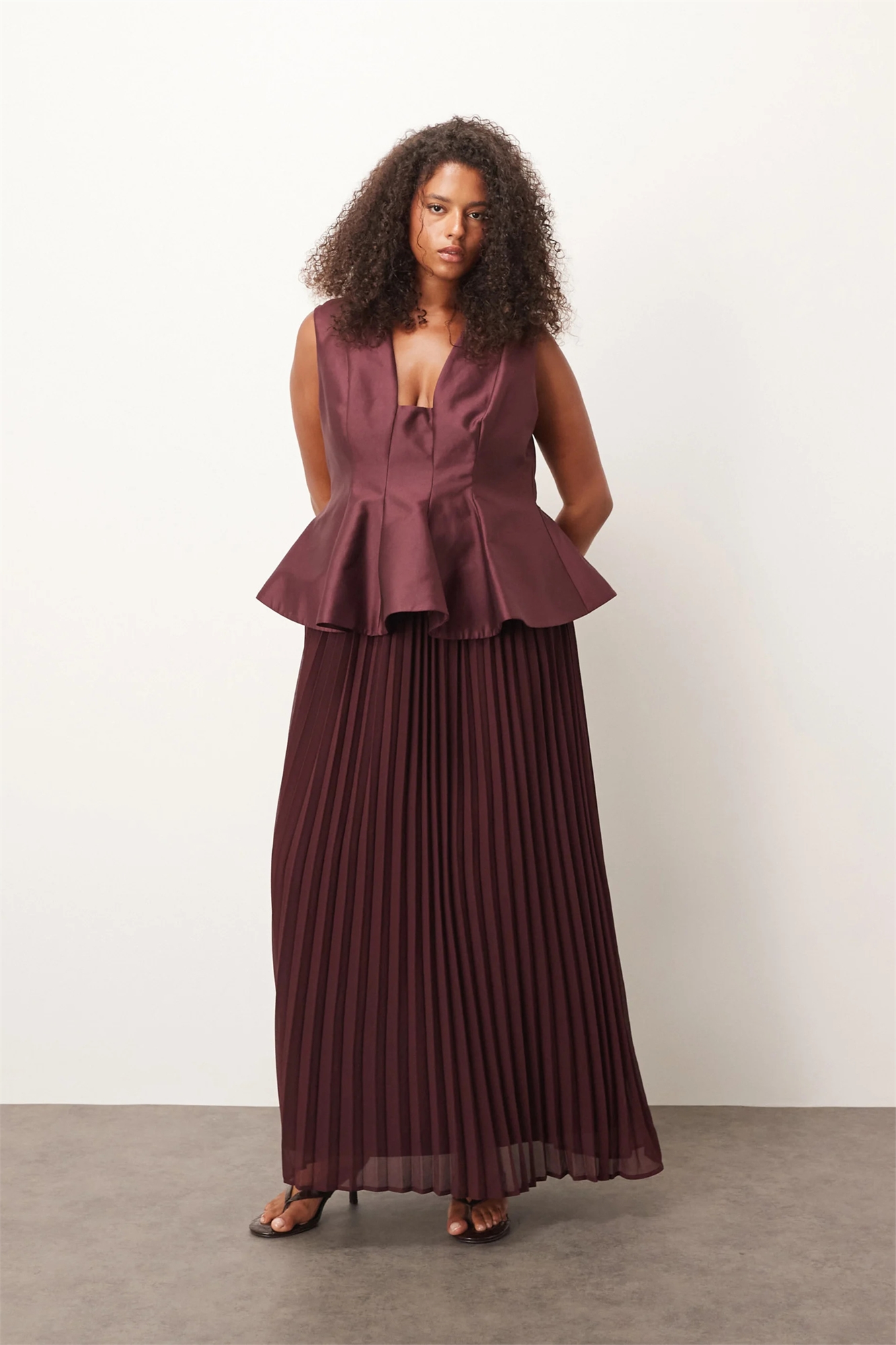 Макси-платье с завышенной талией и выпуклой линией, с контрастной плиссированной юбкой