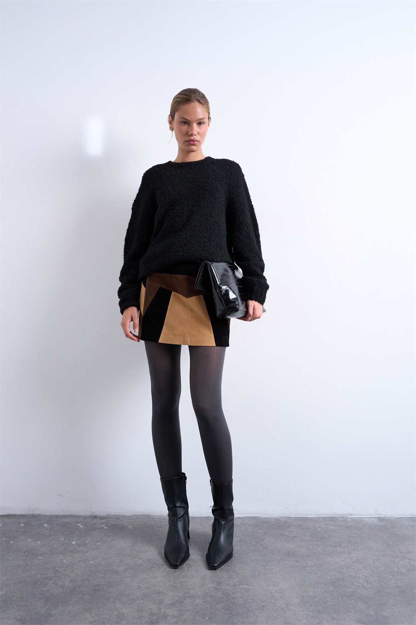 Мини-юбка из искусственной замши в стиле пэчворк