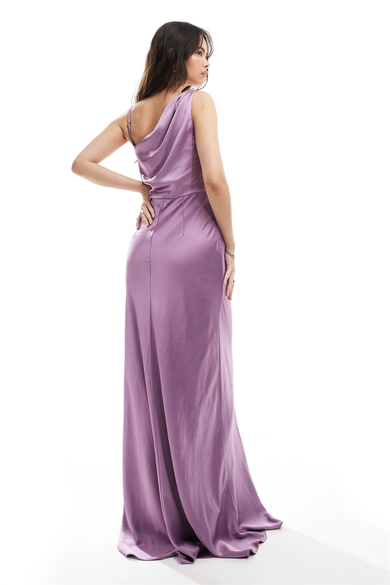 Асимметричное атласное макси-платье с капюшоном спереди для подружки невесты