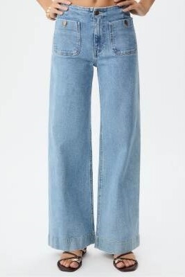 Неэластичный деним: светло-голубой оттенок Основной материал: 99% хлопок, 1% эластан.
