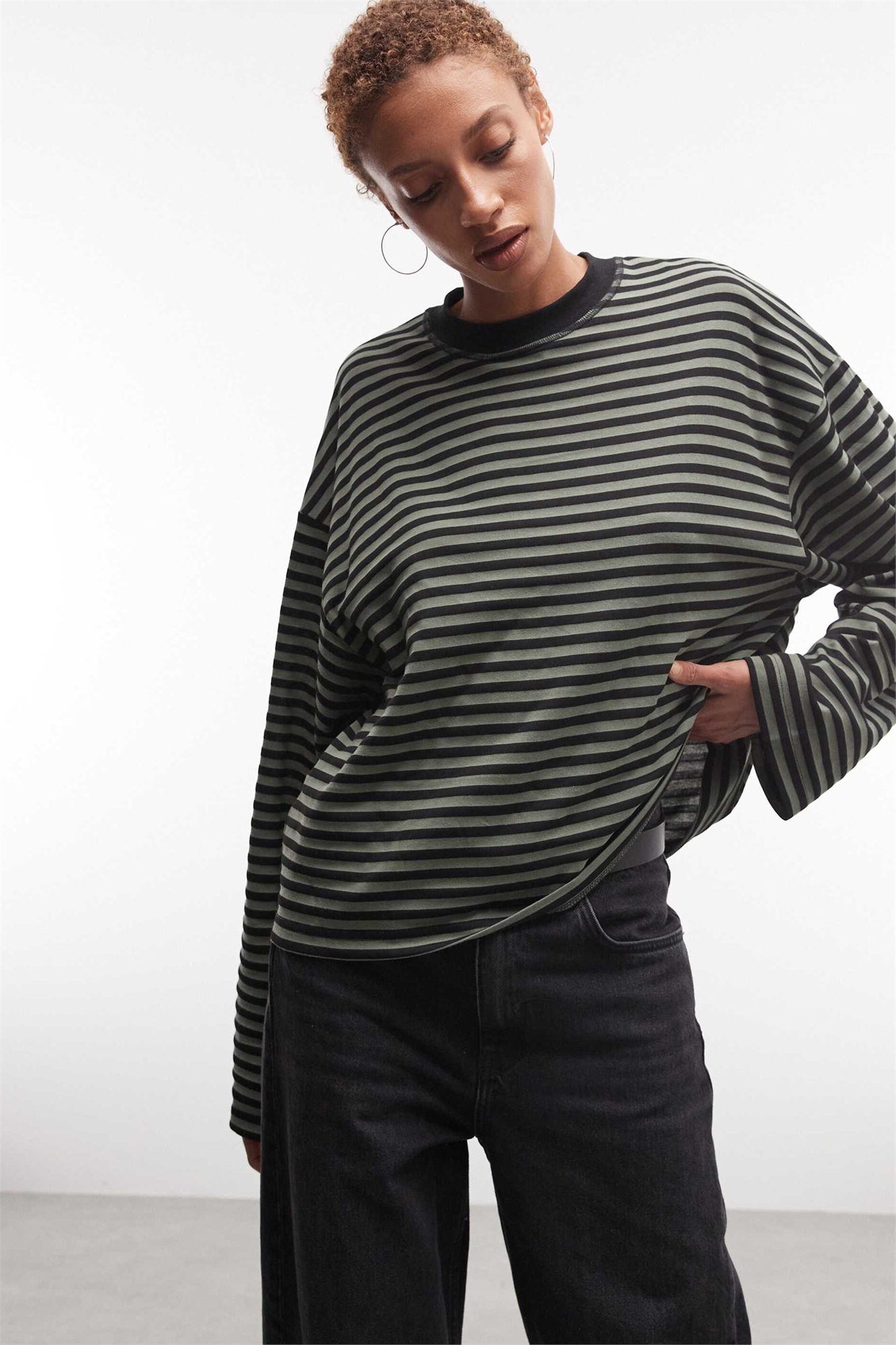 Футболка свободного кроя с круглым вырезом и длинными рукавами из смесовой ткани Bloom