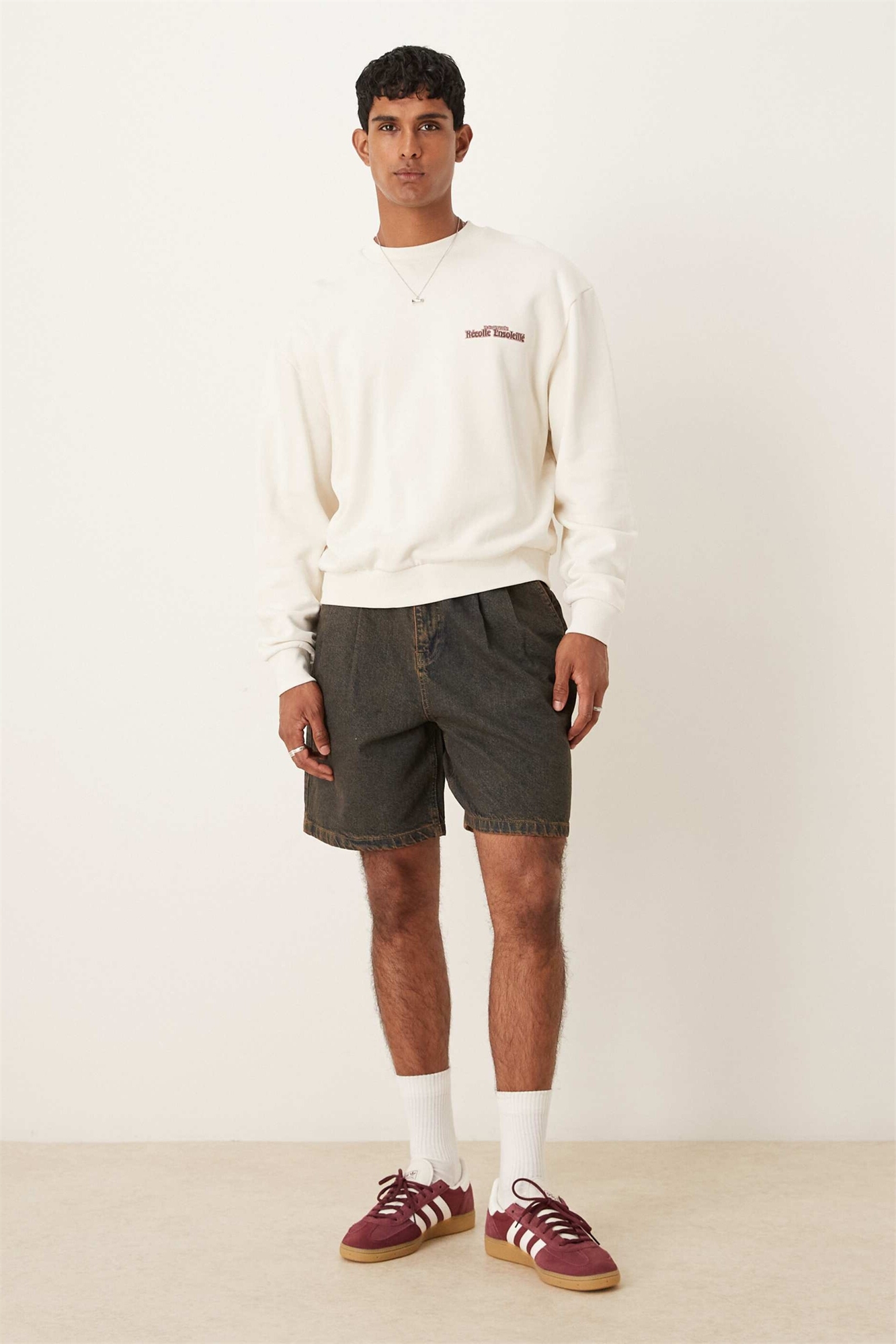 Джинсовые шорты средней длины с двойными складками