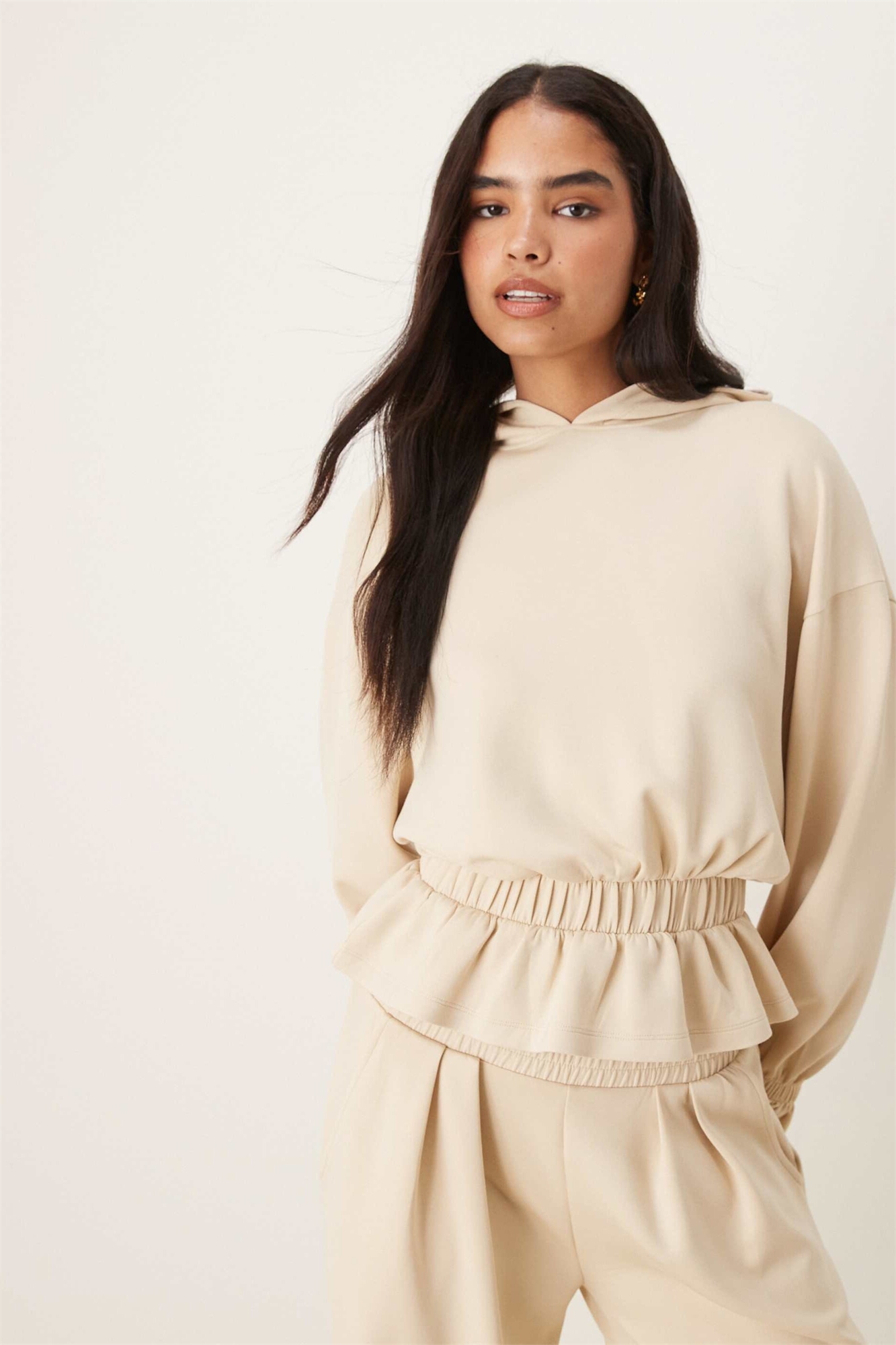Худи из мягкого на ощупь купро с оборкой по низу