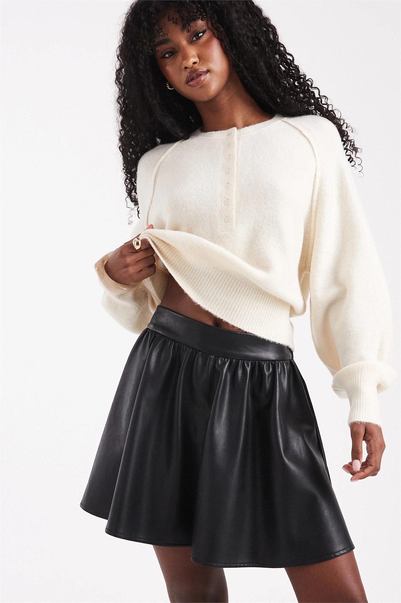 Мини-юбка из искусственной кожи с объемными элементами