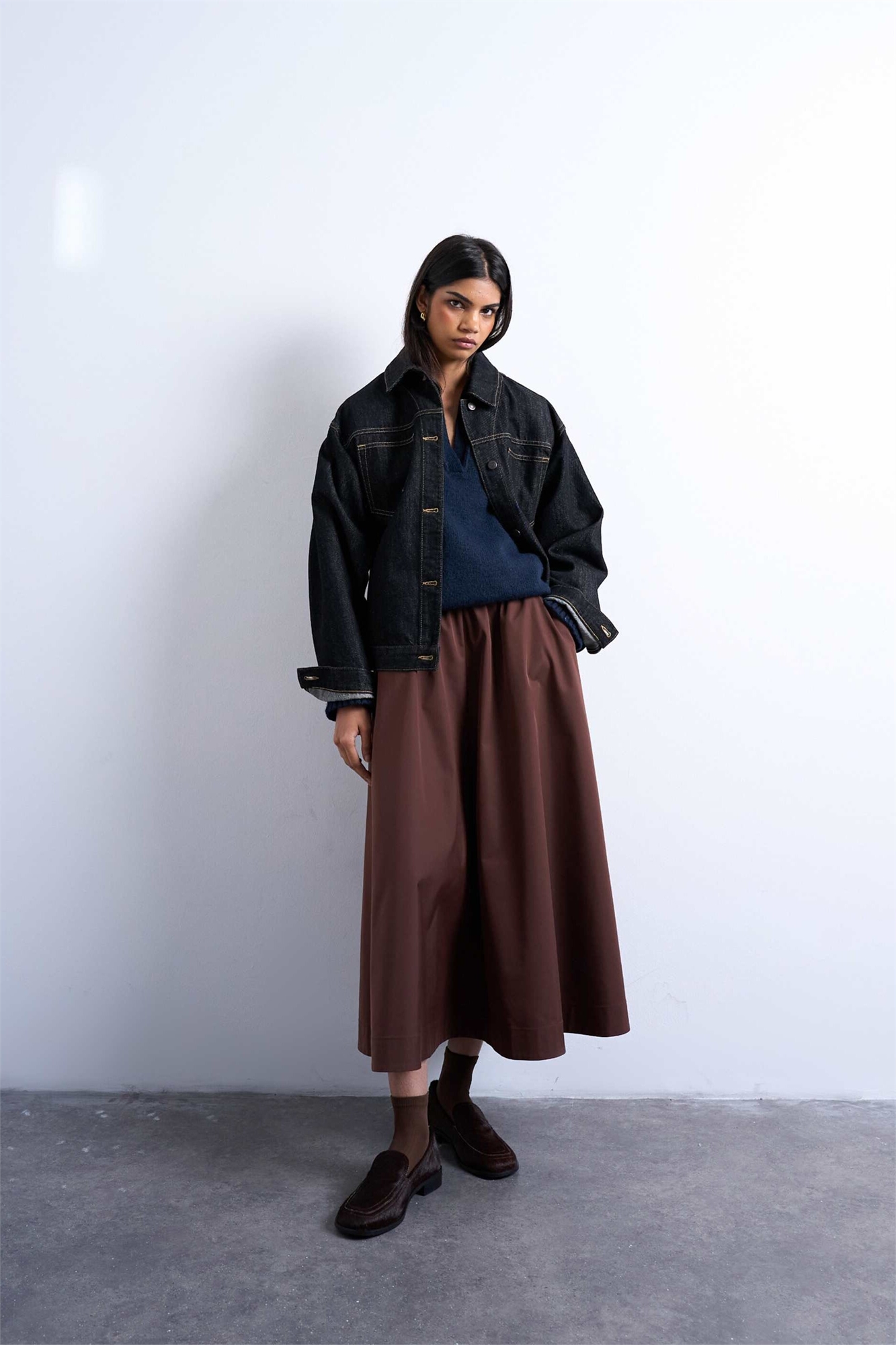 Юбка-миди с раскроем по кругу и эластичным поясом