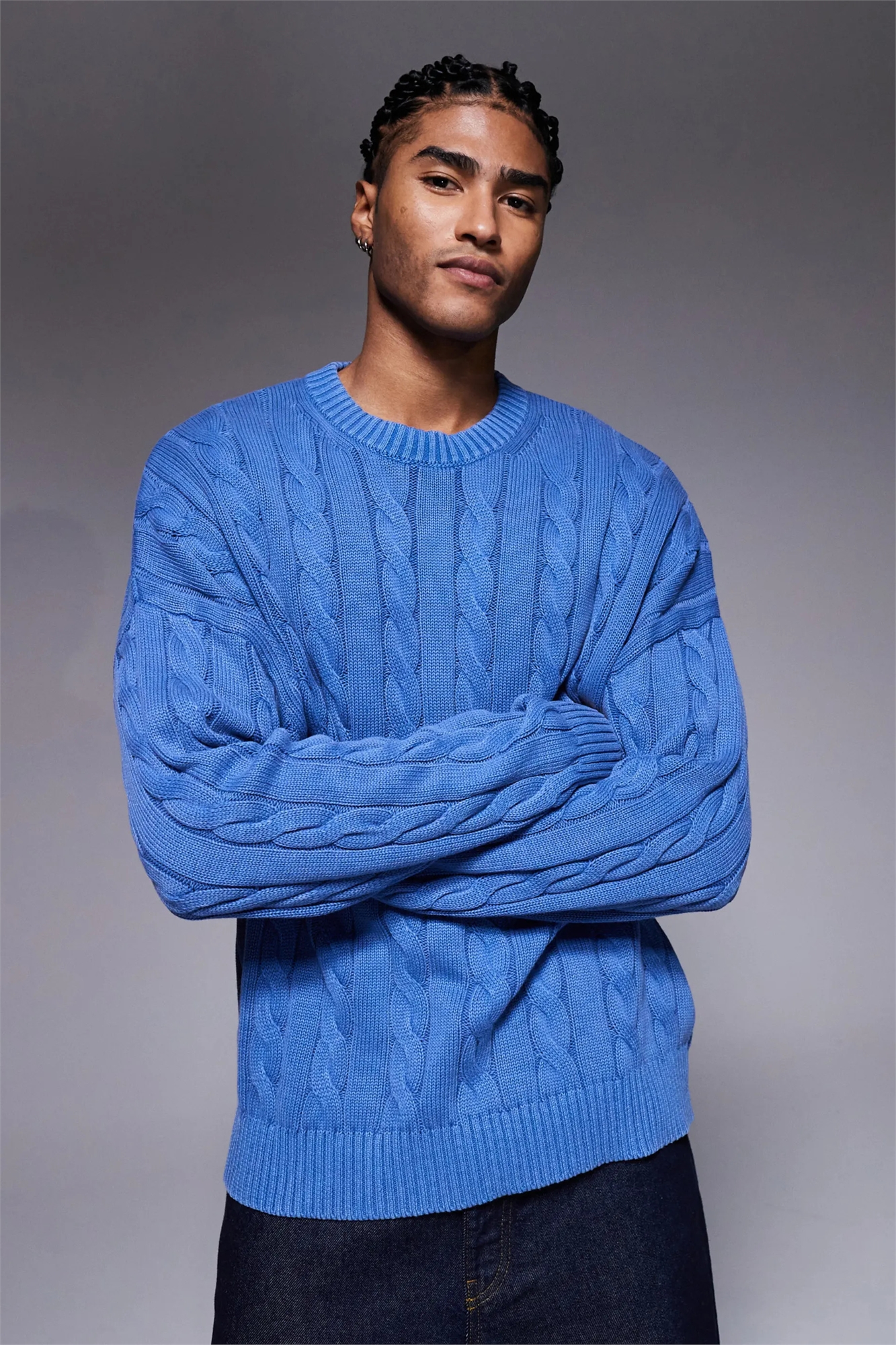 Вязка «коса»: многослойный узор с перекрещивающимися нитями Основной материал: 100% хлопок.