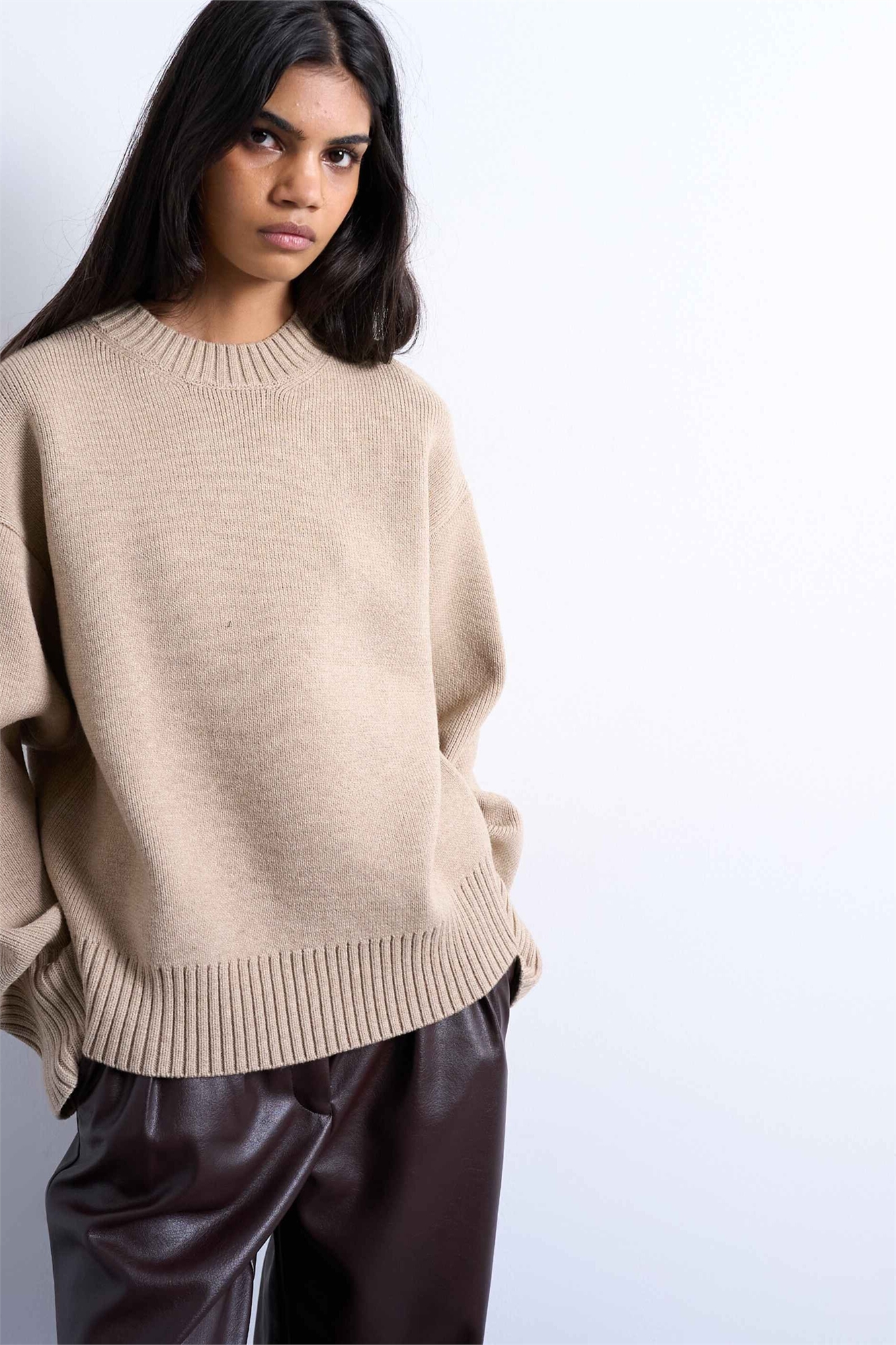Свитер с круглым вырезом из толстой пряжи, связанный на всех спицах
