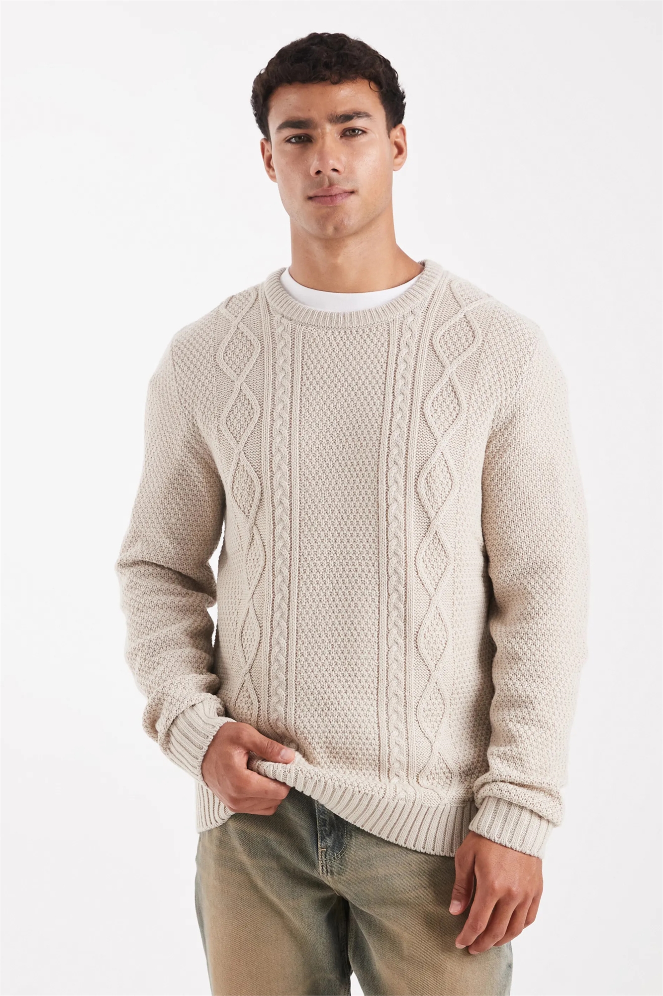 Свитер с косой вязкой