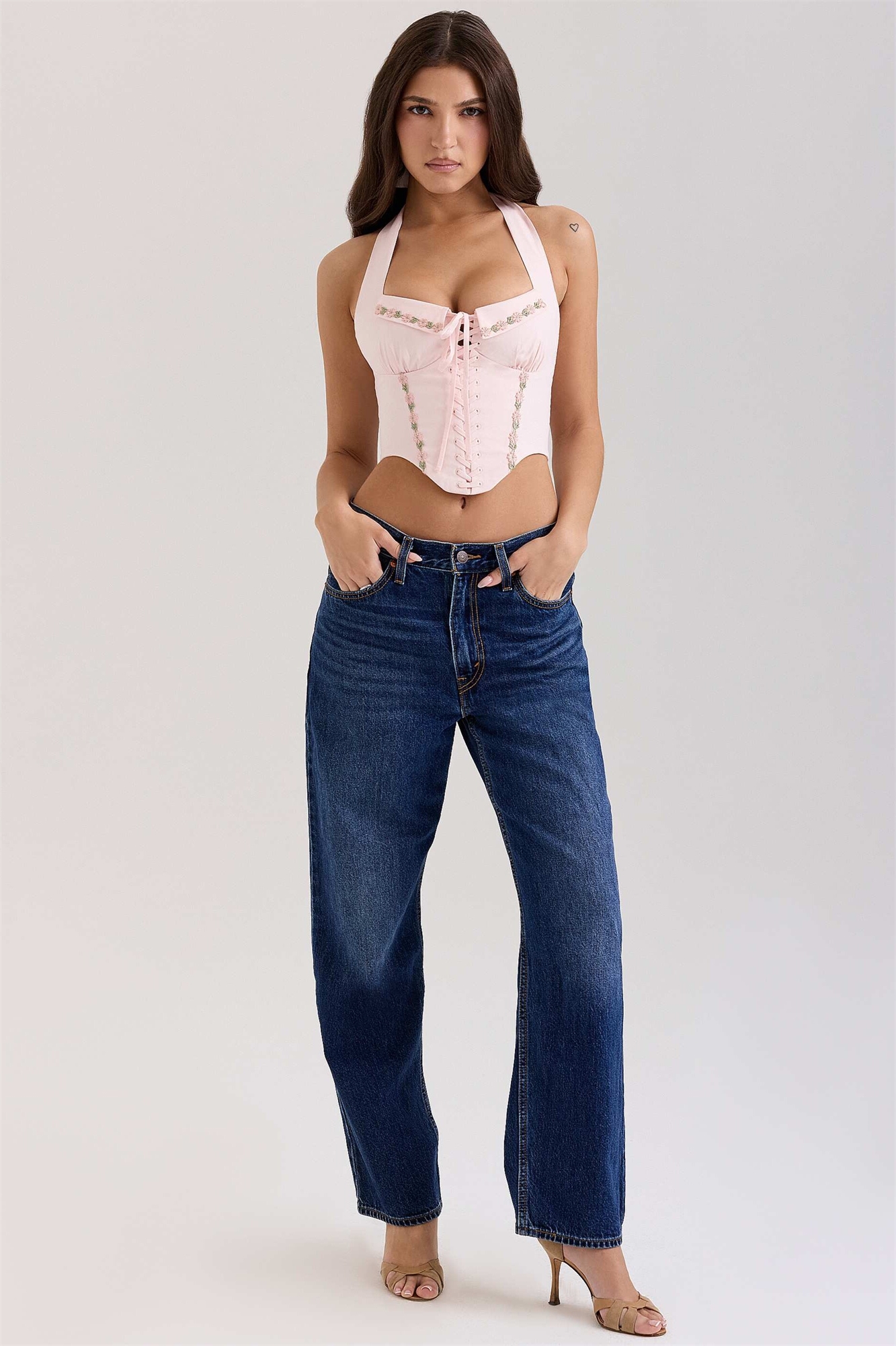 Топ-корсет из эластичного хлопка с вышивкой «Деми»