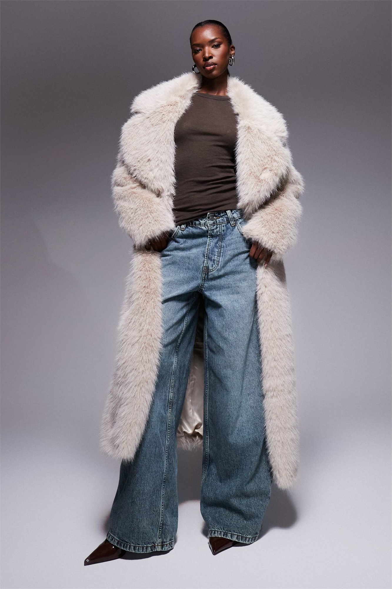 Эксклюзивное пальто макси с объемным воротником из искусственного меха