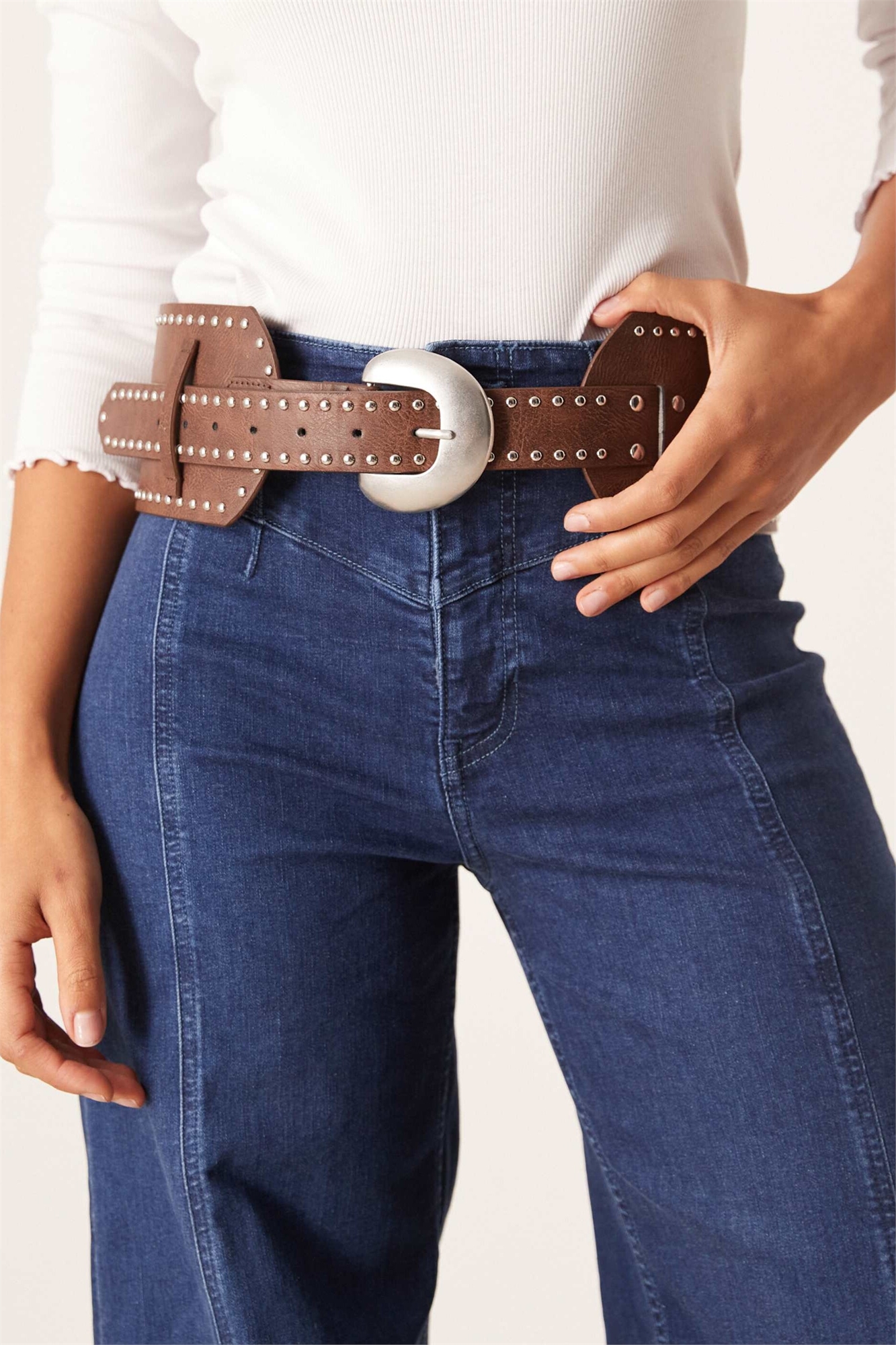 Широкий ремень с заклепками