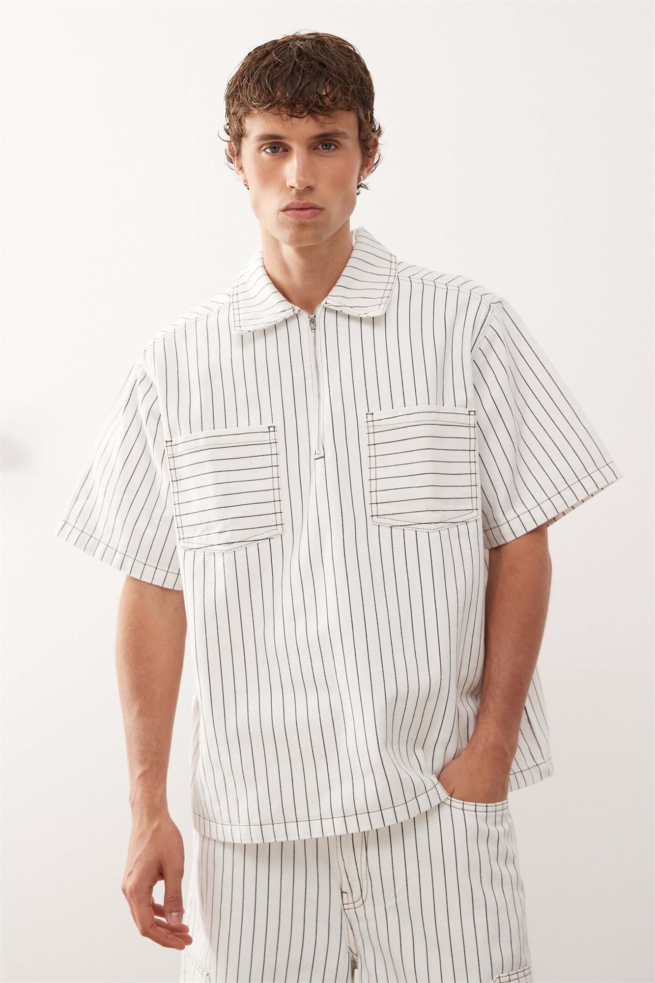 Рубашка прямого кроя из денима в тонкую полоску с застежкой-молнией co-ord