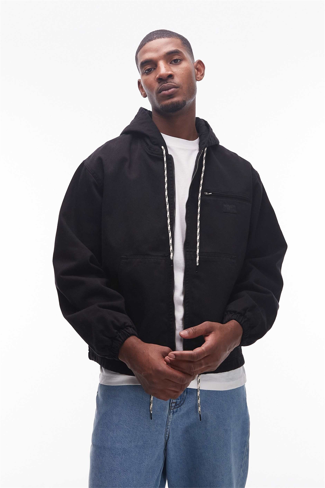 Хлопковая рабочая куртка с капюшоном на молнии