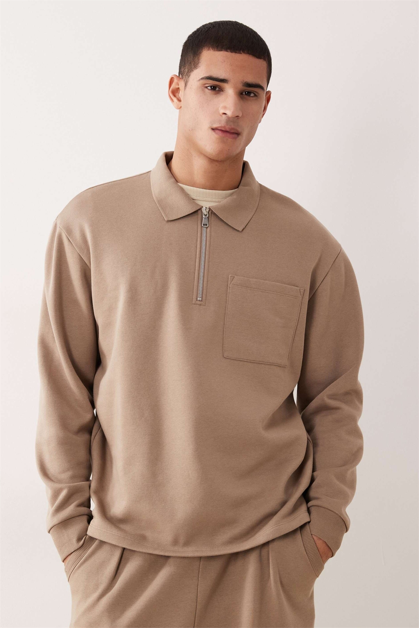 Свитшот свободного кроя с четвертью молнии и воротником из ребристой ткани