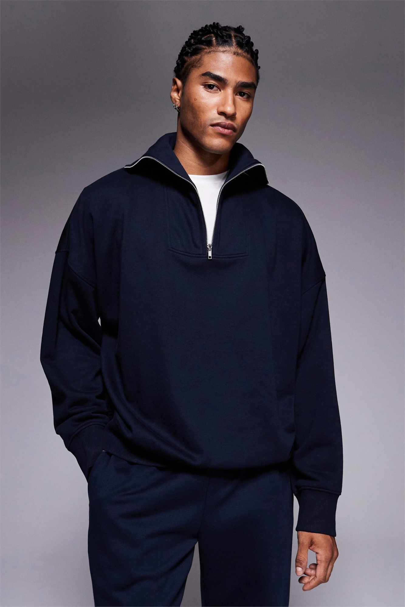 Свитшот свободного кроя с заниженными плечами и четвертью молнии