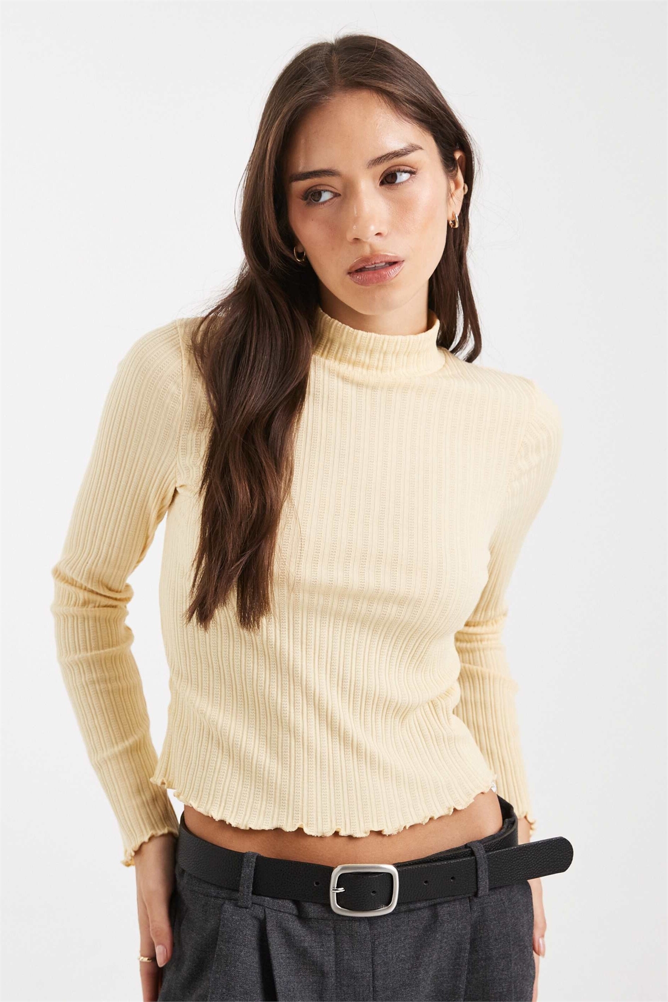 Топ с высоким воротником и ребристой отделкой