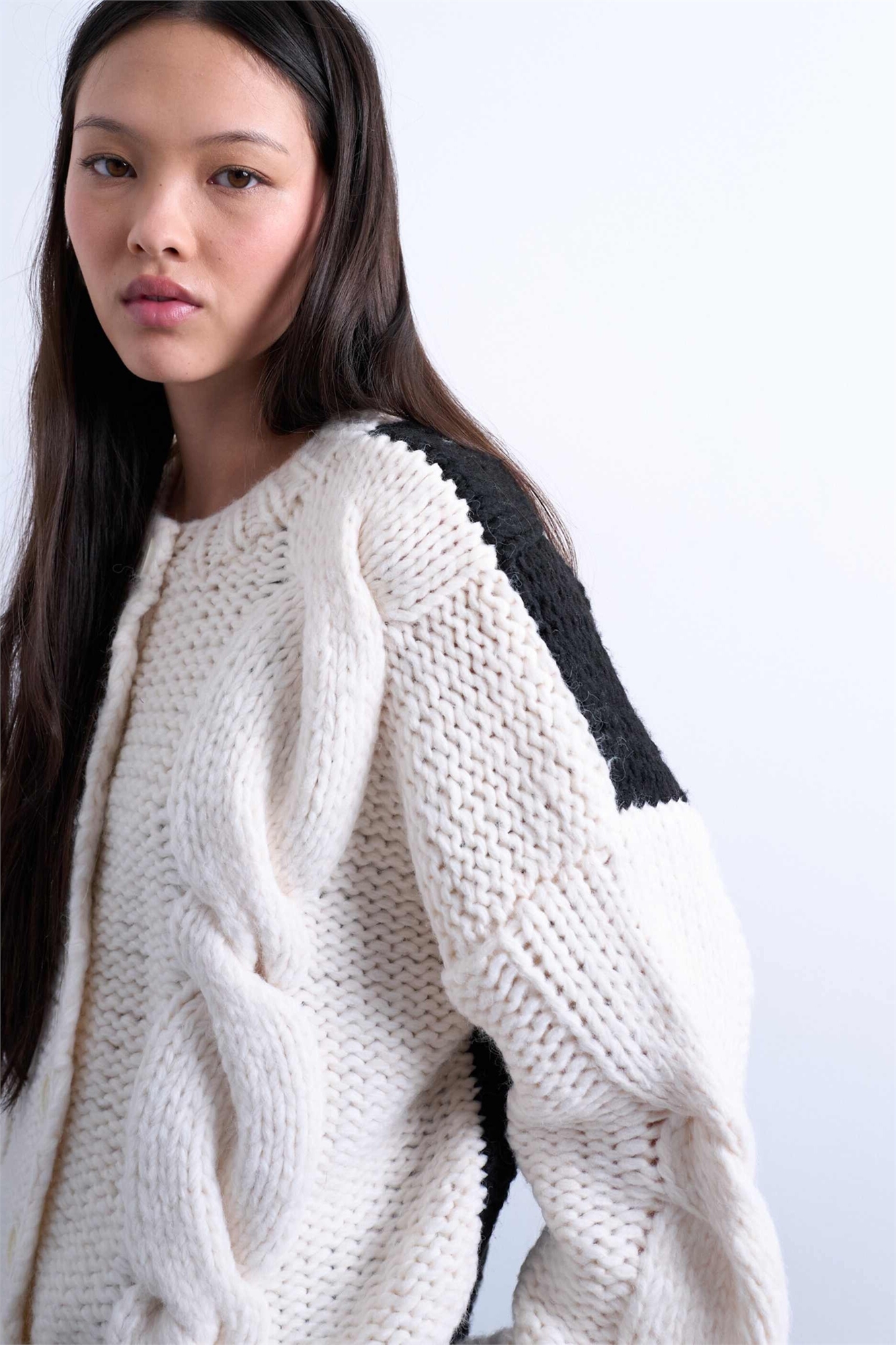 Вязаный кардиган премиум-класса с толстыми косами и цветовыми вставками
