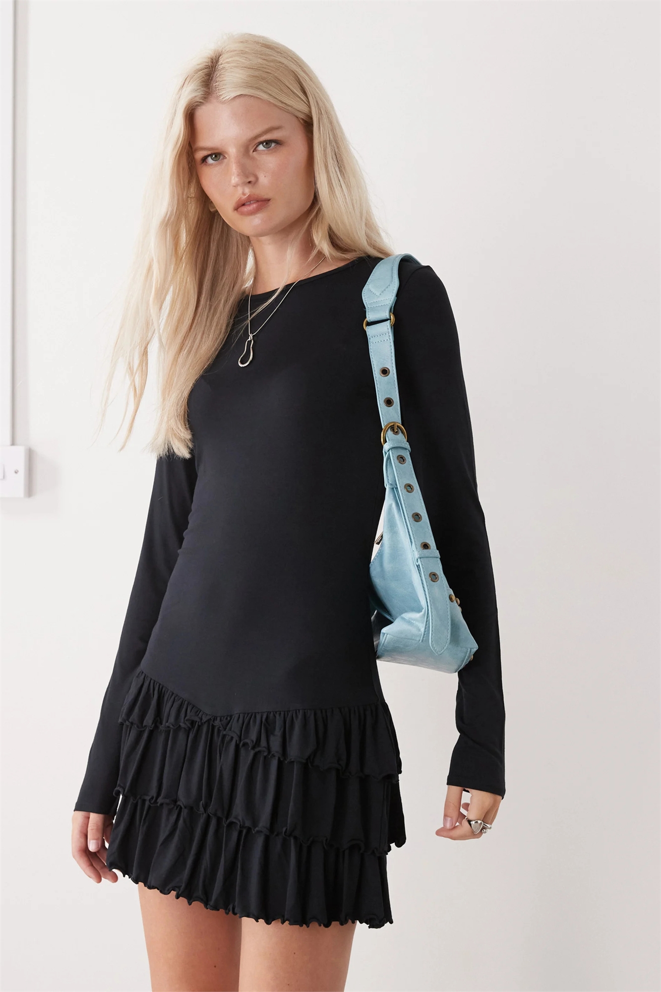 Мини-платье с оборками и длинными рукавами