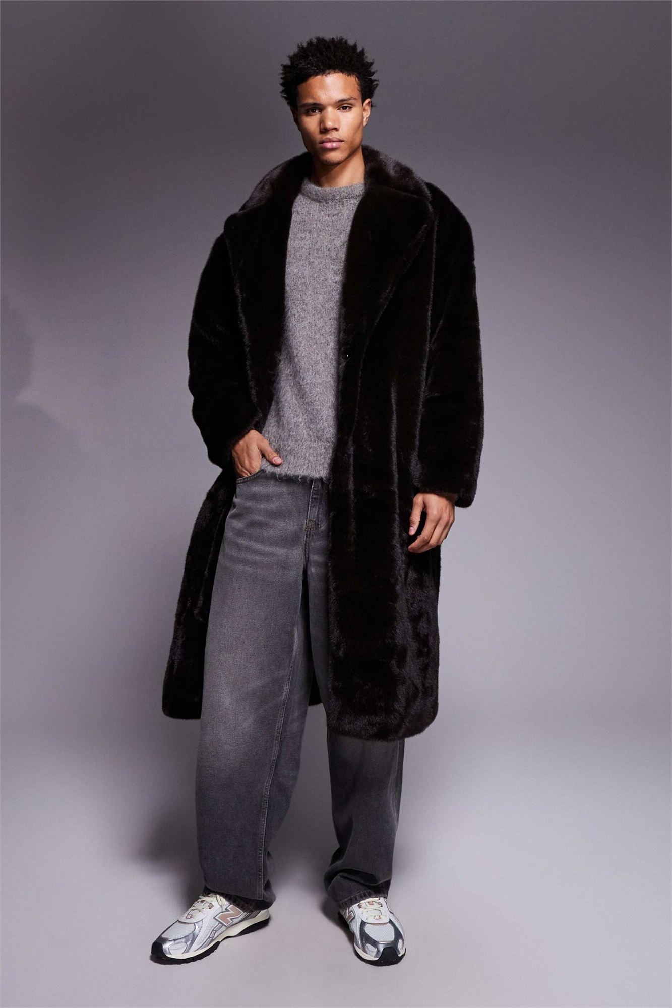 Длинное пальто оверсайз из искусственного меха