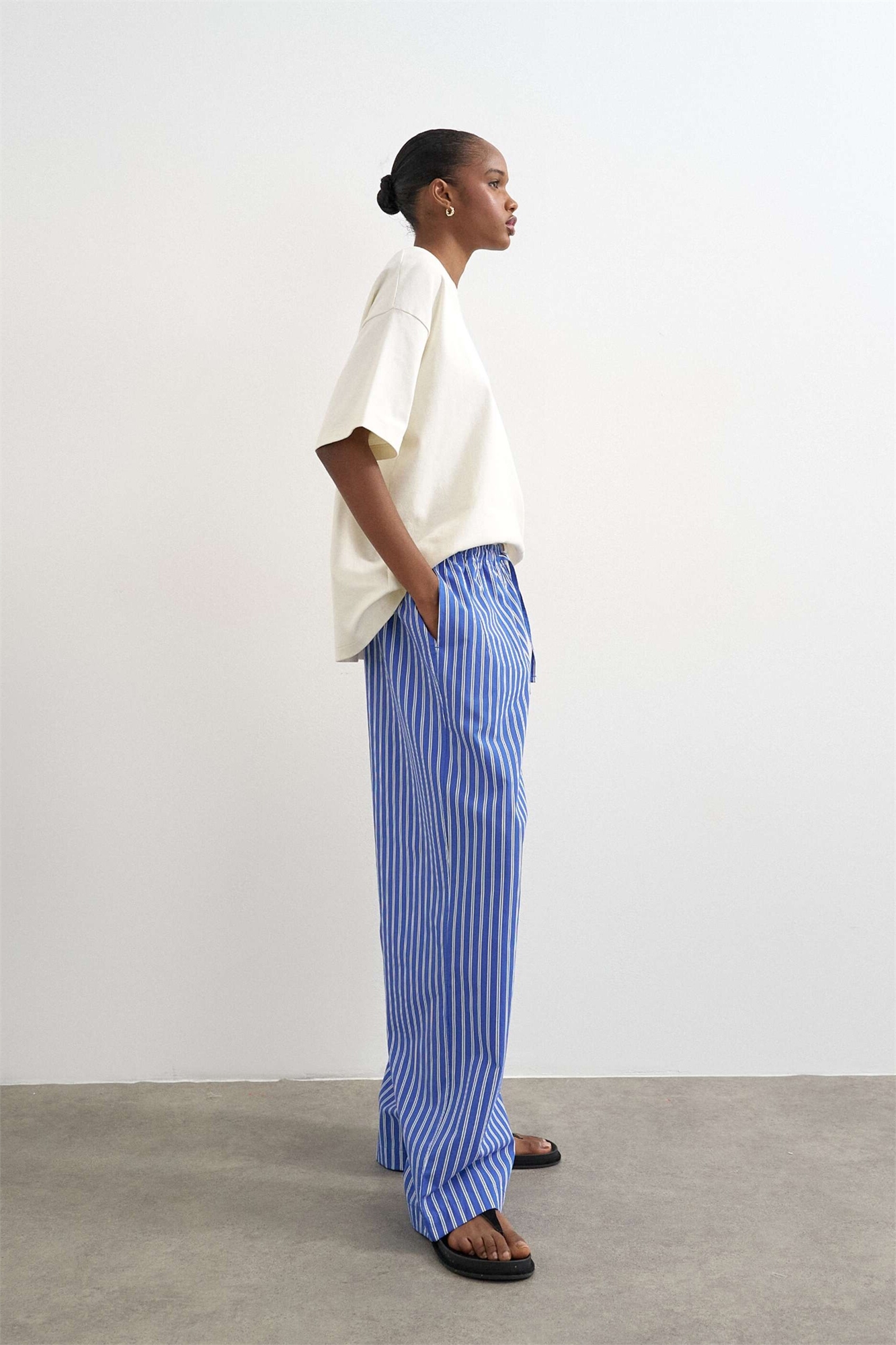 Брюки из поплина с широкими брючинами и эластичным поясом