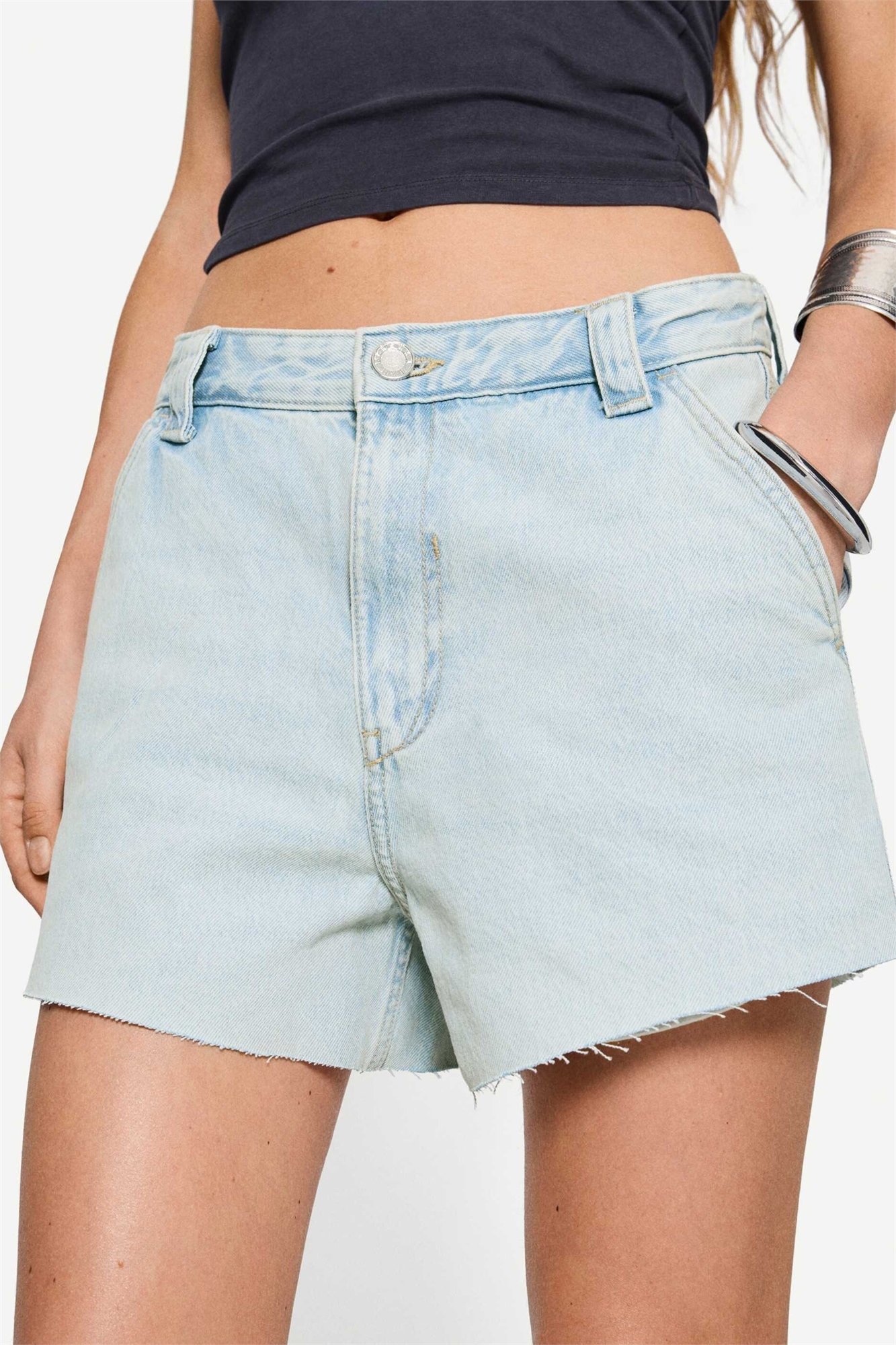 Неэластичный деним: светло-голубой оттенок Основной материал: 100% хлопок.