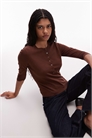 Трикотажная кофта-хенли с ребристой отделкой и длинными рукавами