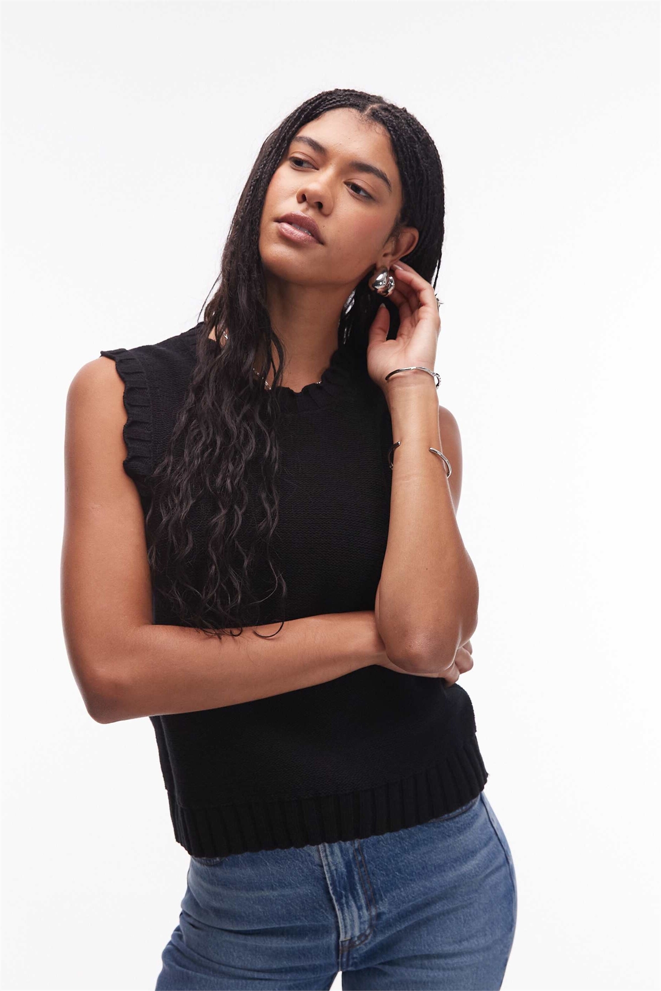 Трикотажный жилет-майка с оборкой по краю