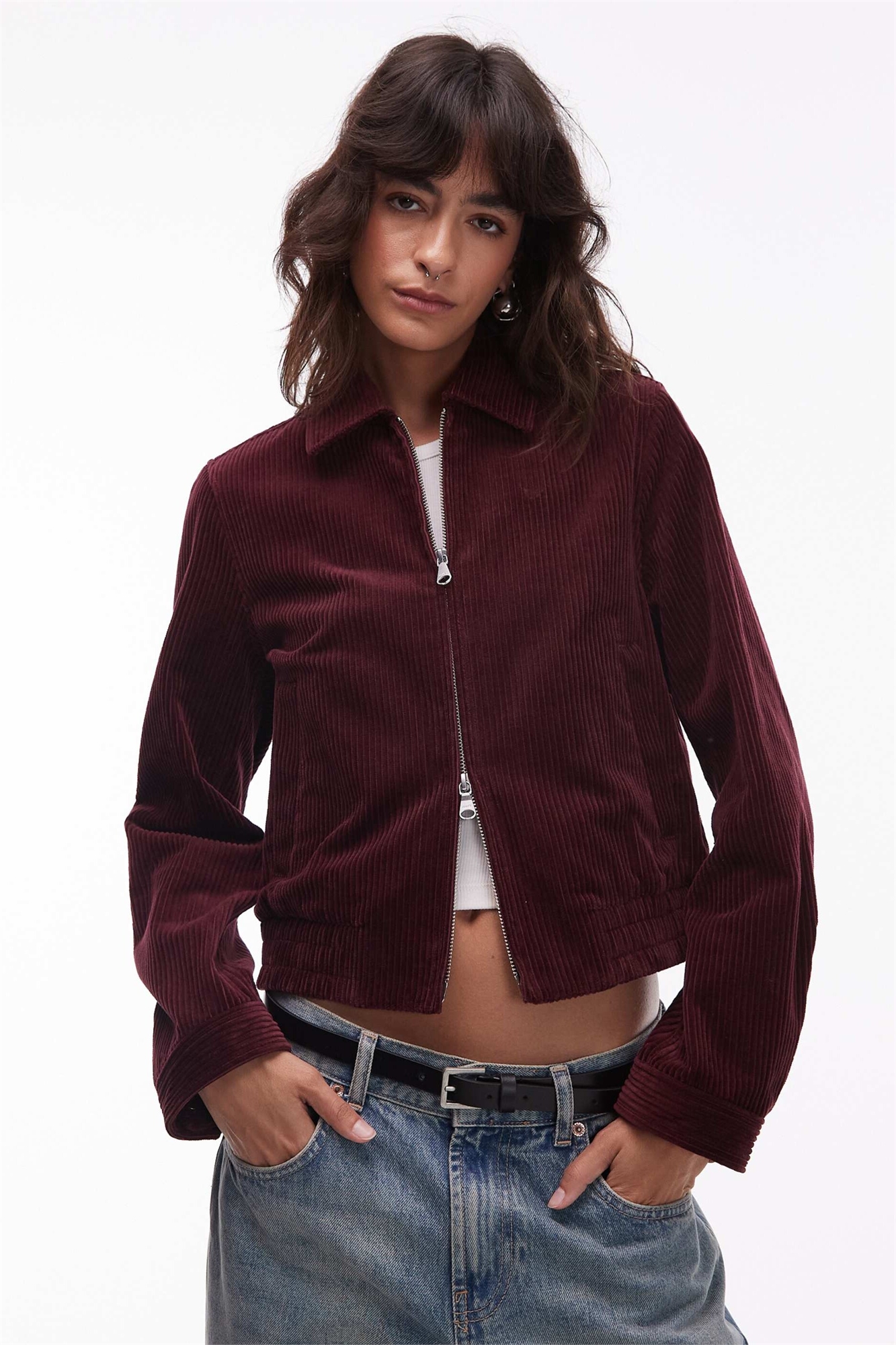Куртка-блузон из вельвета с застежкой-молнией спереди